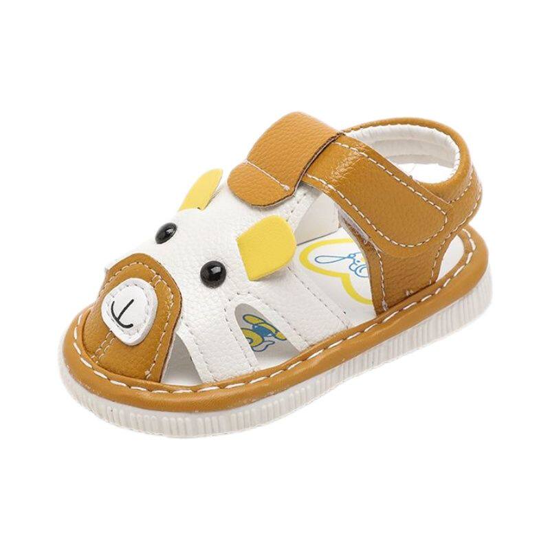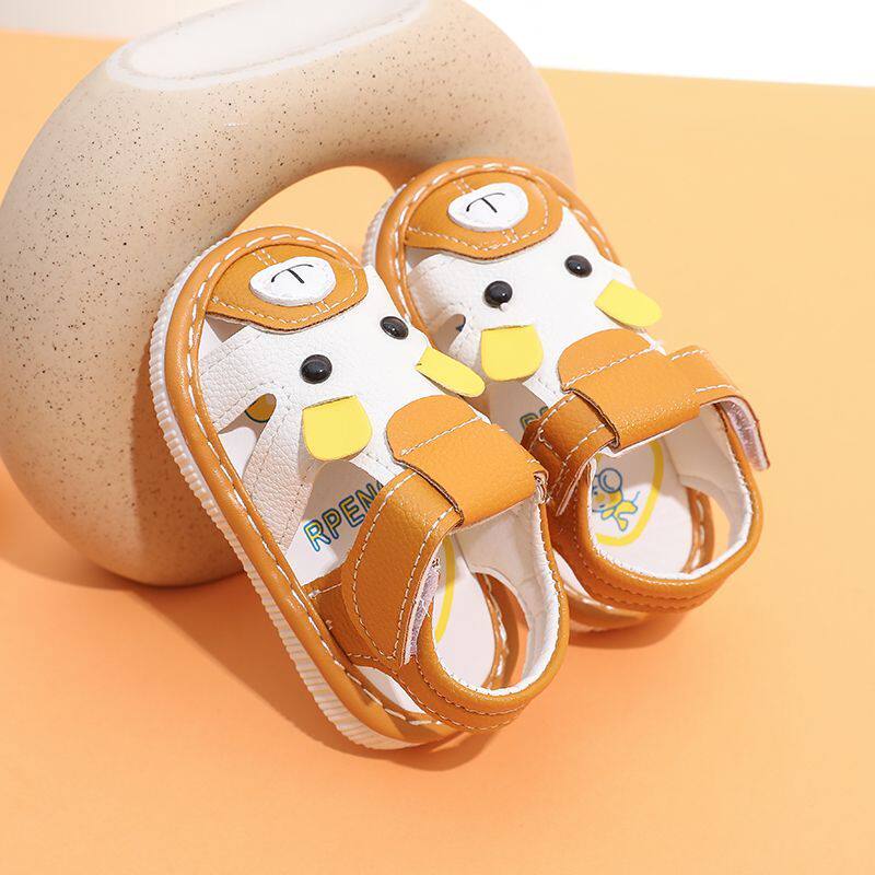 宝宝软底防滑学步鞋夏季 包头防踢叫叫鞋 婴儿凉鞋魔术贴男女童鞋