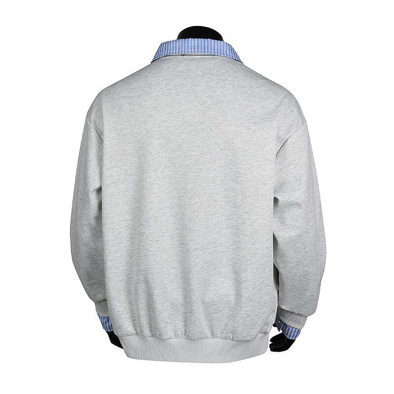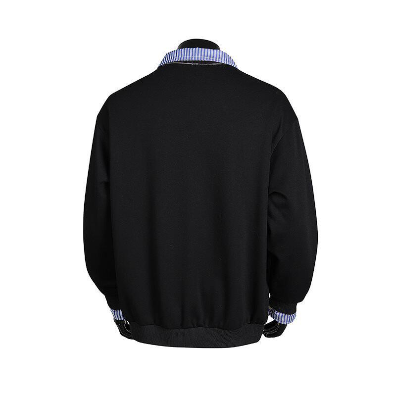 假两件条纹衬衣领卫衣男士春秋重磅休闲时尚套头上衣大码【控价89