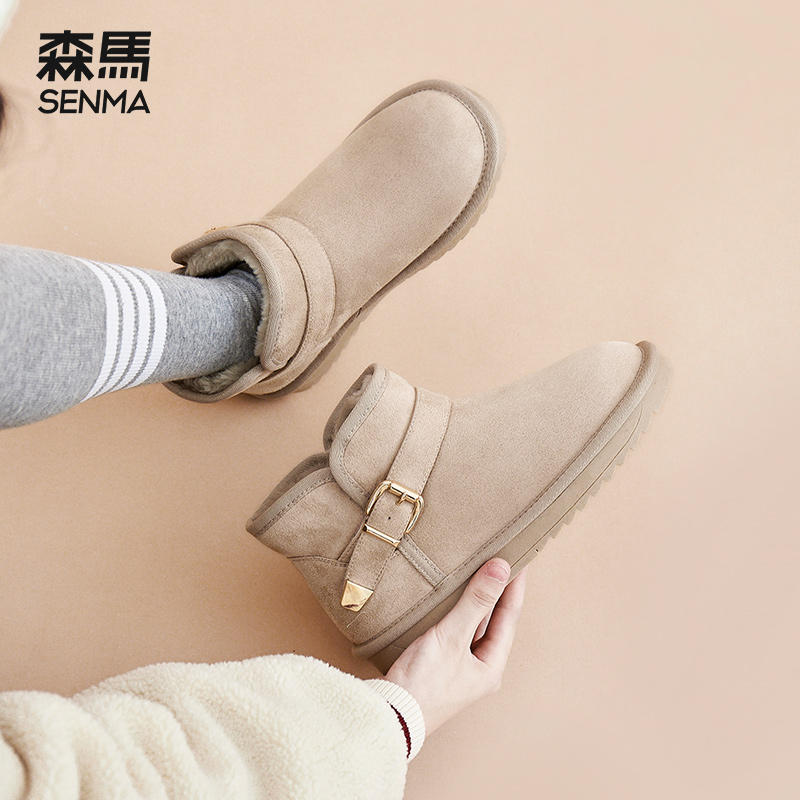 森马毛毛雪地靴女2025新款加绒厚底防水防滑毛毛棉鞋中筒冬天鞋子