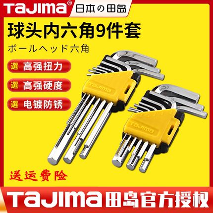 tajima田岛工具球头内六角扳手套装工业级加长9件套高硬度耐用