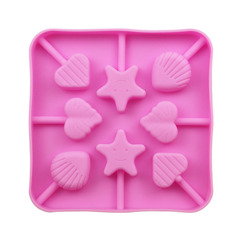 8连贝壳爱心棒棒糖模 香薰模 DIY 蛋糕配饰模棒棒糖模 含20根棒