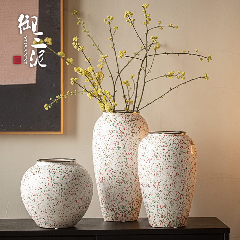 御三泥中式侘寂风水培插鲜花客厅玄关小清新干花花器摆件陶瓷花瓶