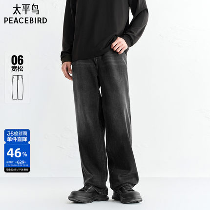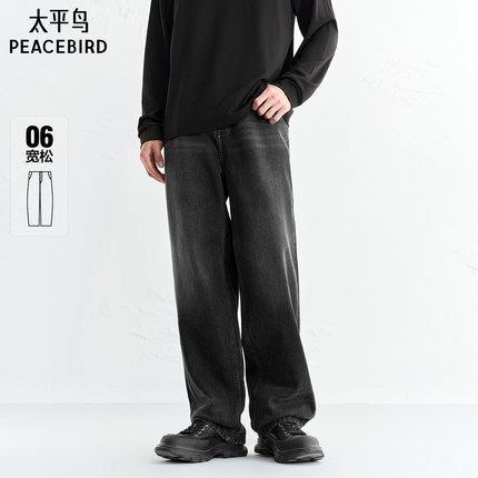 太平鸟男装牛仔裤25冬季新款黑色复古纯棉牛仔长裤质感休闲阔腿