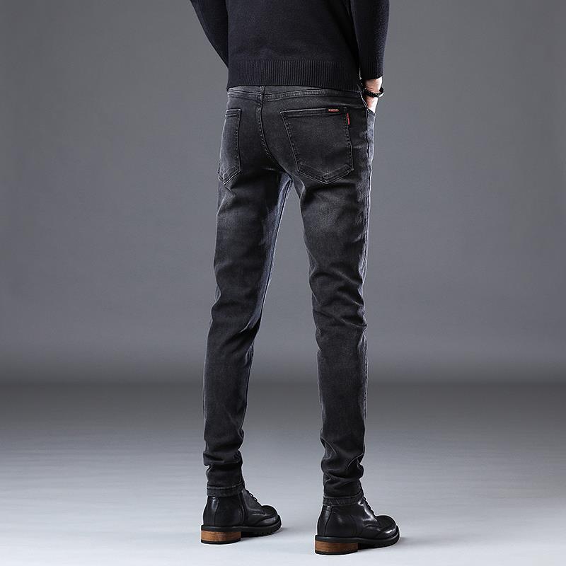 香港加绒加厚高弹力牛仔裤男春秋款长裤黑色休闲修身小脚2024冬季
