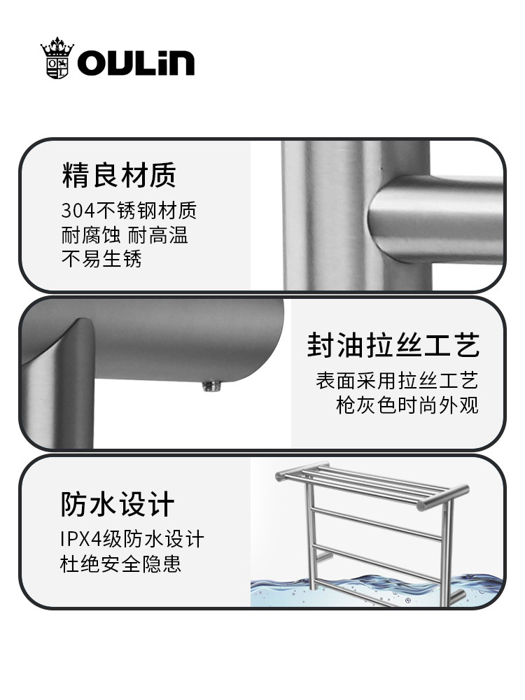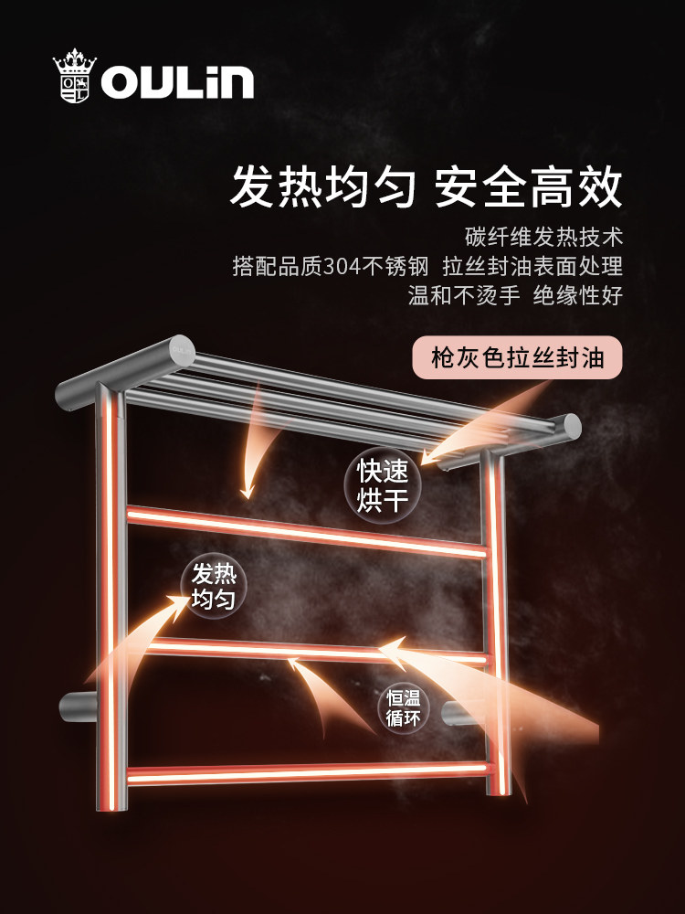 【新品】欧琳枪灰电热毛巾架发热置物烘干架卫生间打孔智能浴巾架
