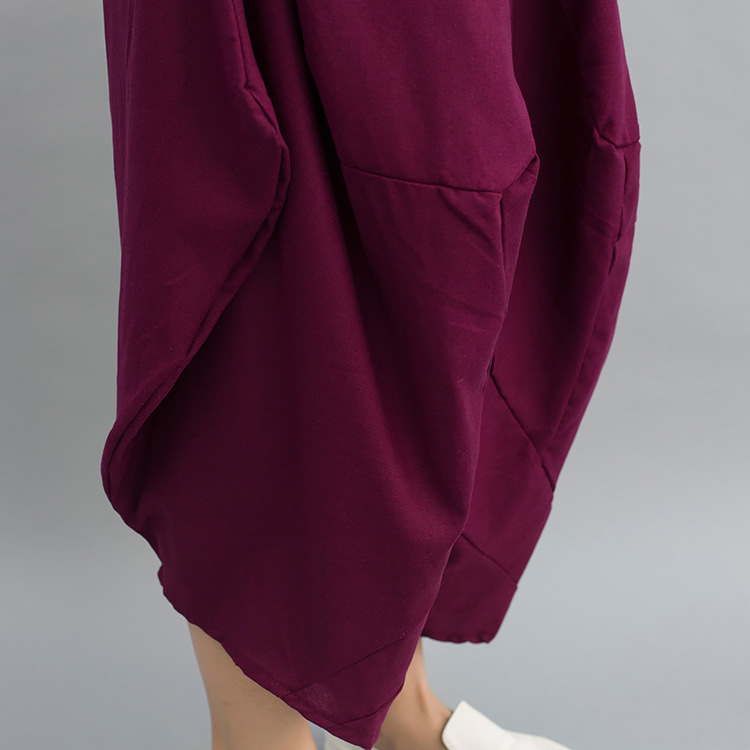 色大码女装新款休闲裤民族风哈伦裤大裆松紧腰九分裤女