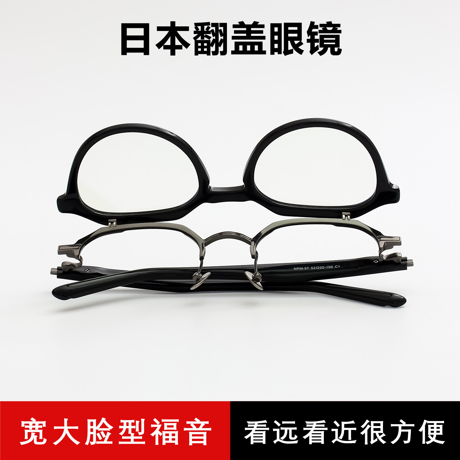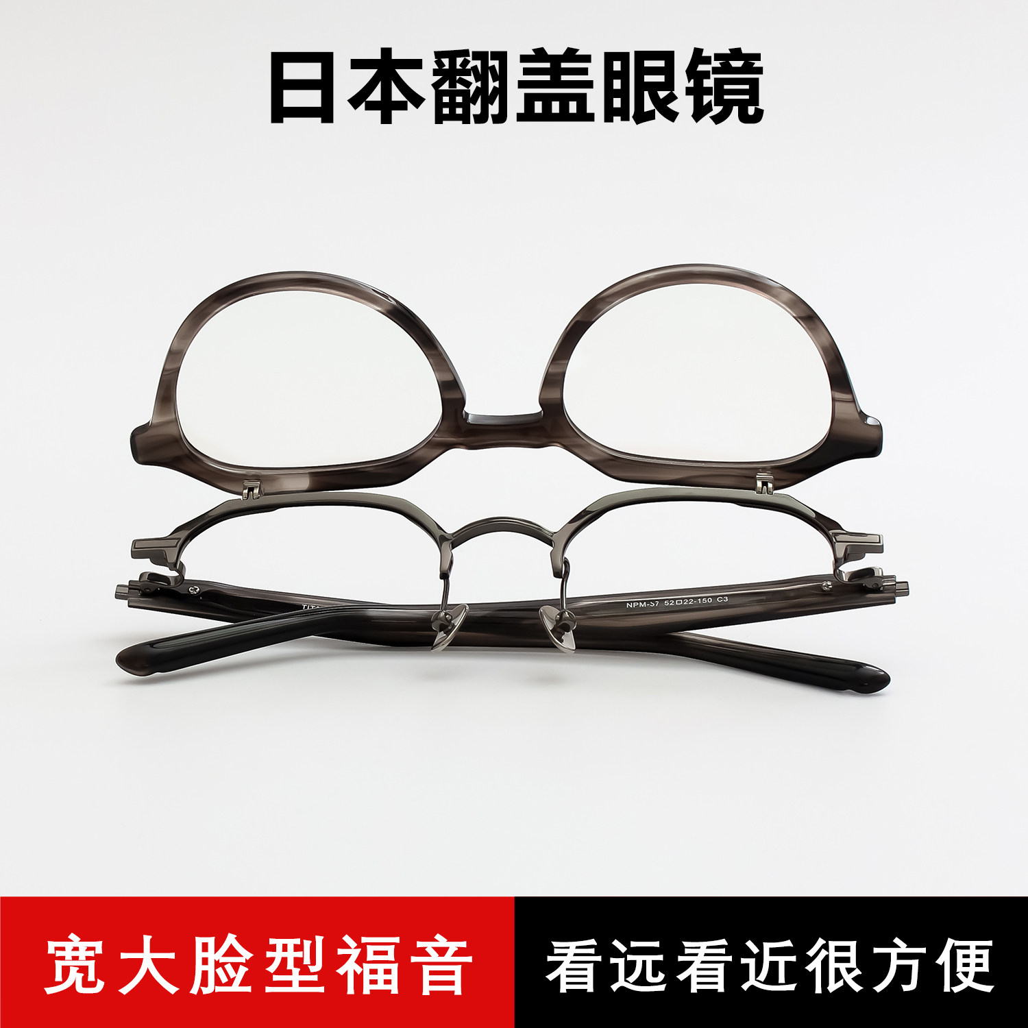 日本眼镜可上翻近视眼镜框男配老花镜男款翻盖眼镜架纯钛板材宽脸