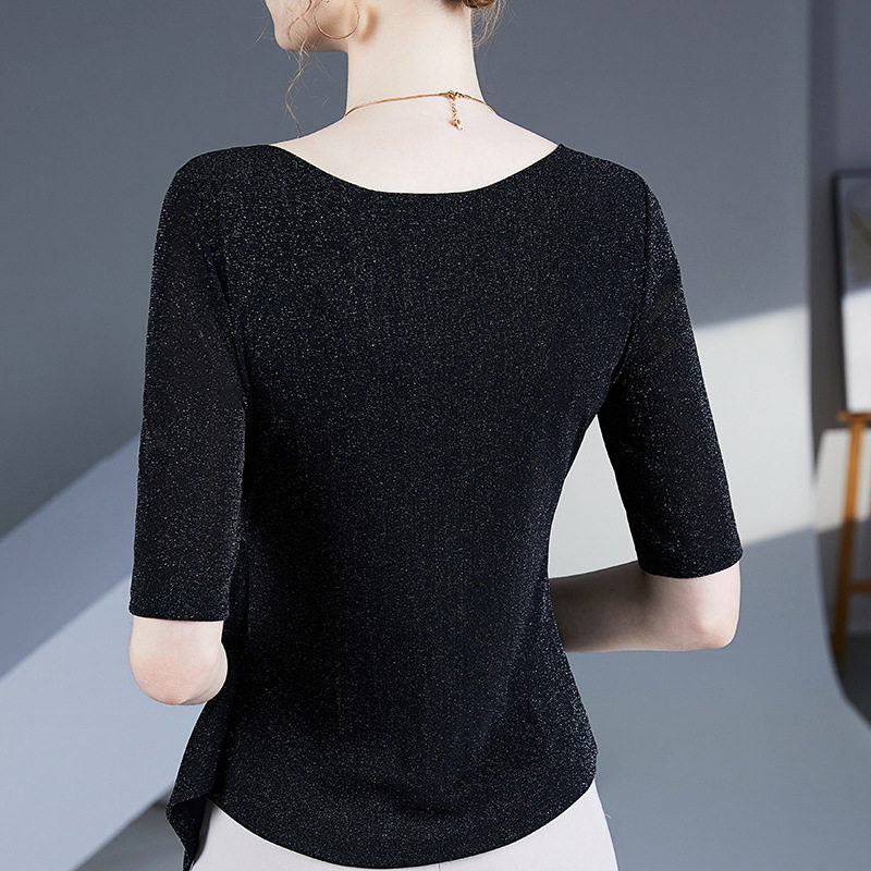 吉特巴跳交谊舞服装网纱上衣女短袖拉丁舞练功服舞形体训练服