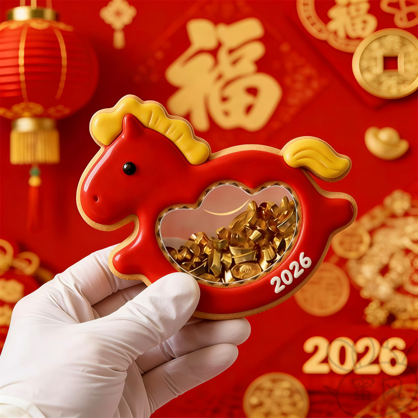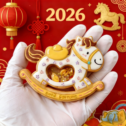 2026新年卡通马年摇摇乐饼干模具元宝爱心摇摇马曲奇烘焙印模工具