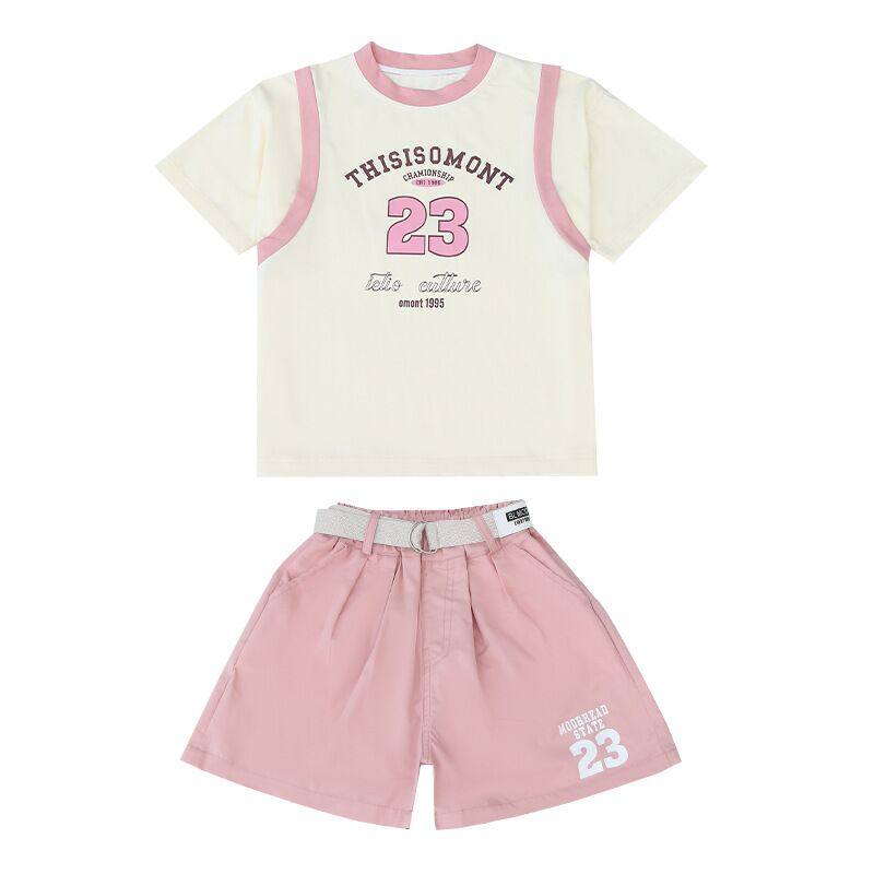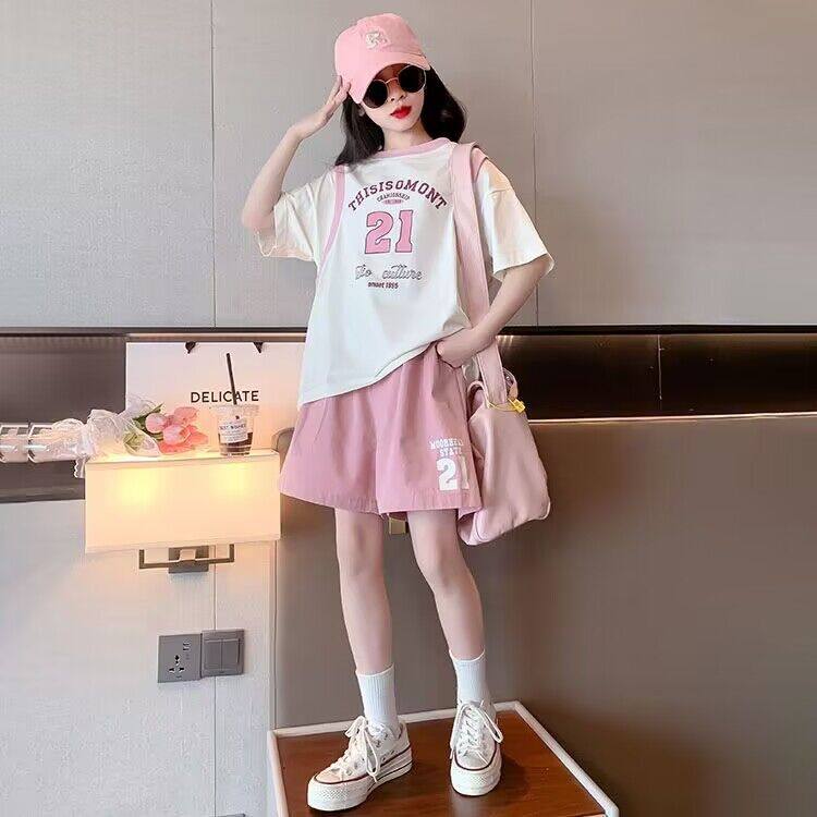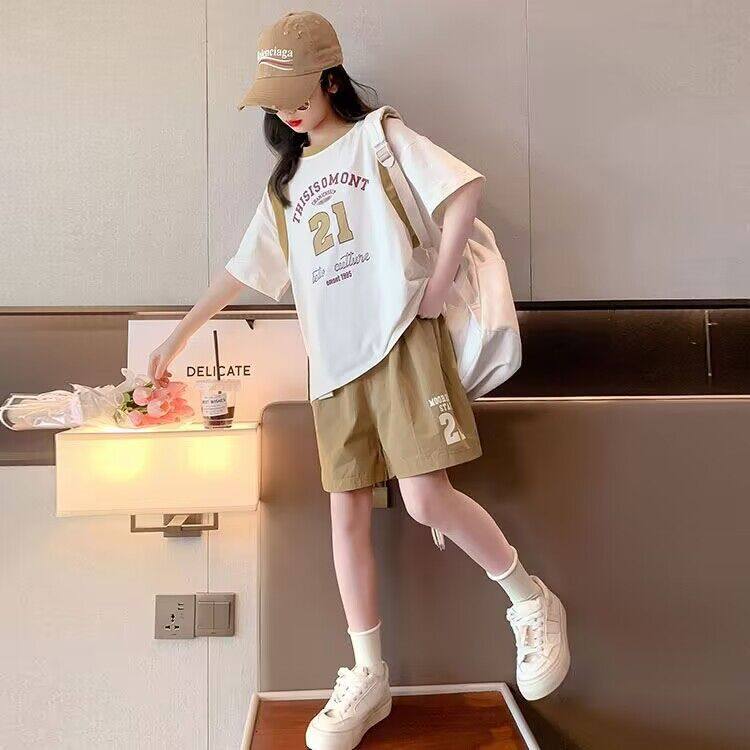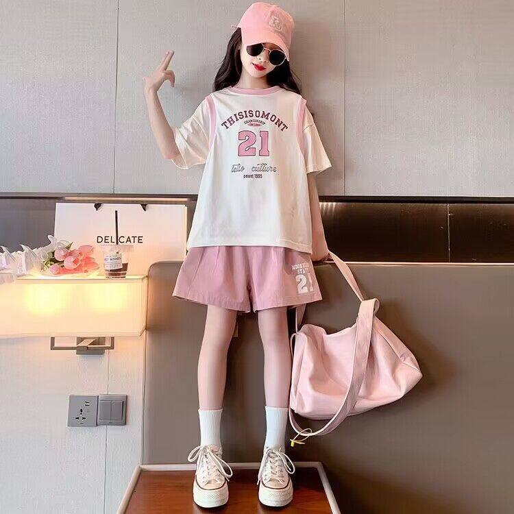 女童夏季套装2023新款纯棉洋z气儿童夏装女大童宽松运动短裤两件
