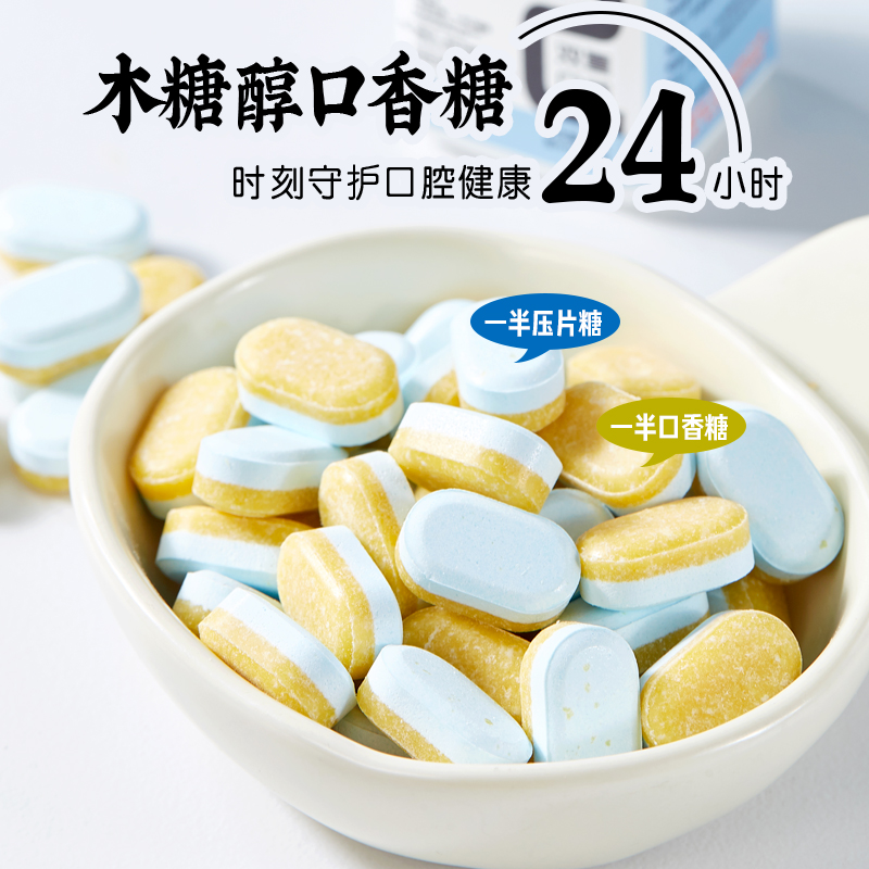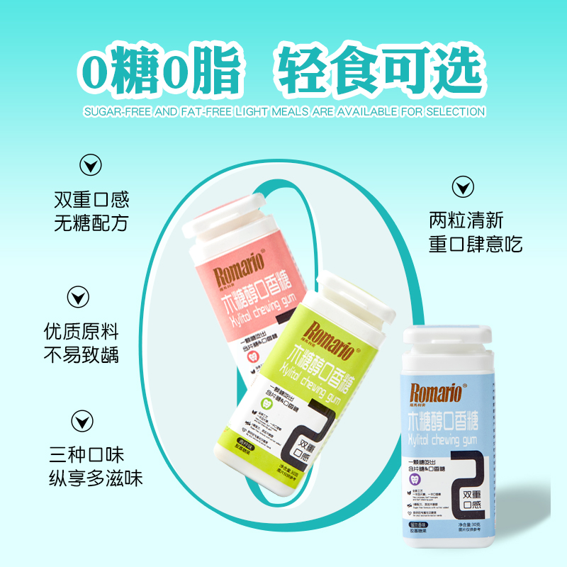 罗马利奥木糖醇口香糖夹含片二合一双重口感无糖接吻糖果清新口气