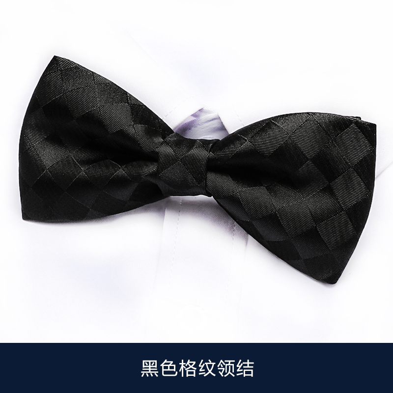 男士领结伴郎新郎黑色条纹纯色衬衫婚礼韩版蝴蝶结黑色格纹领结