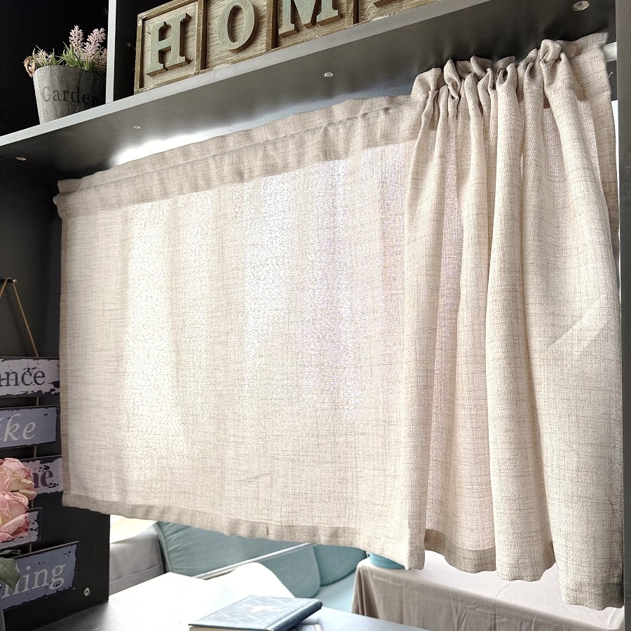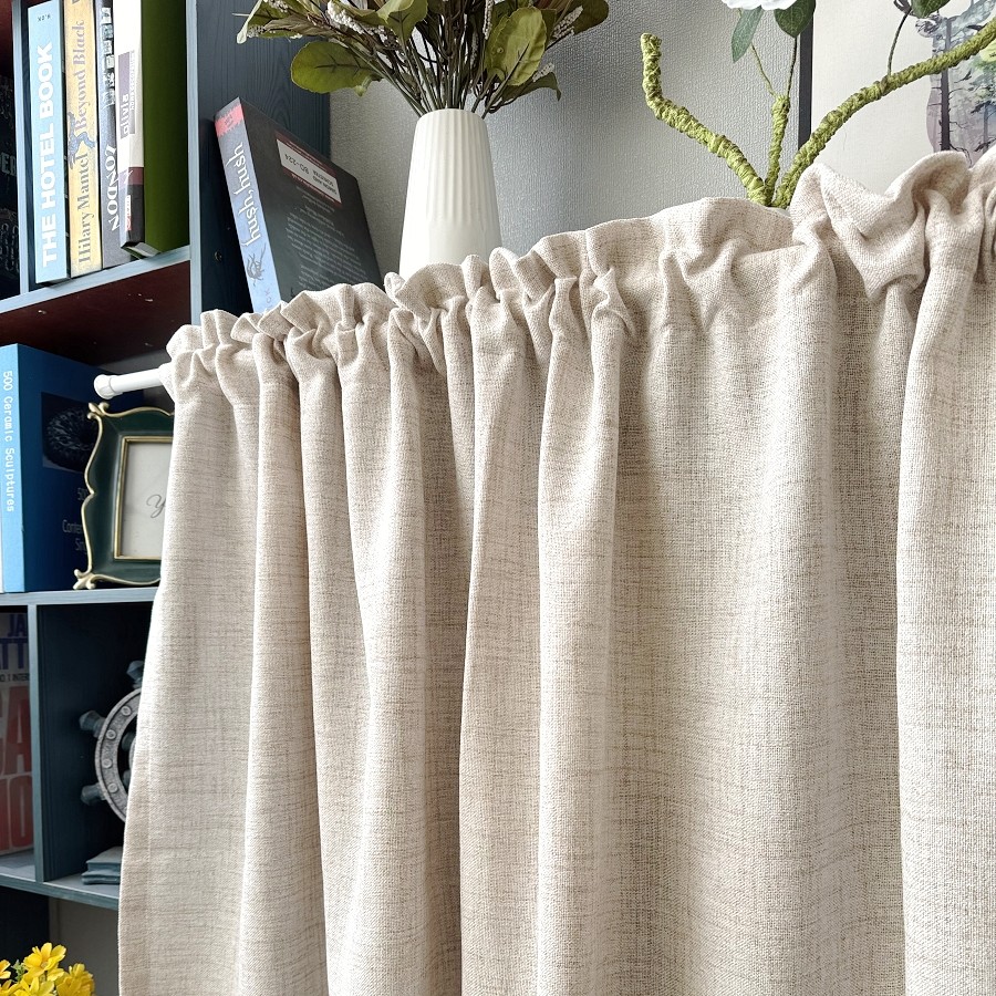 美式乡村厨房半帘短帘门帘亚麻色窗帘窗纱帘涤麻简约日式橱柜纯色