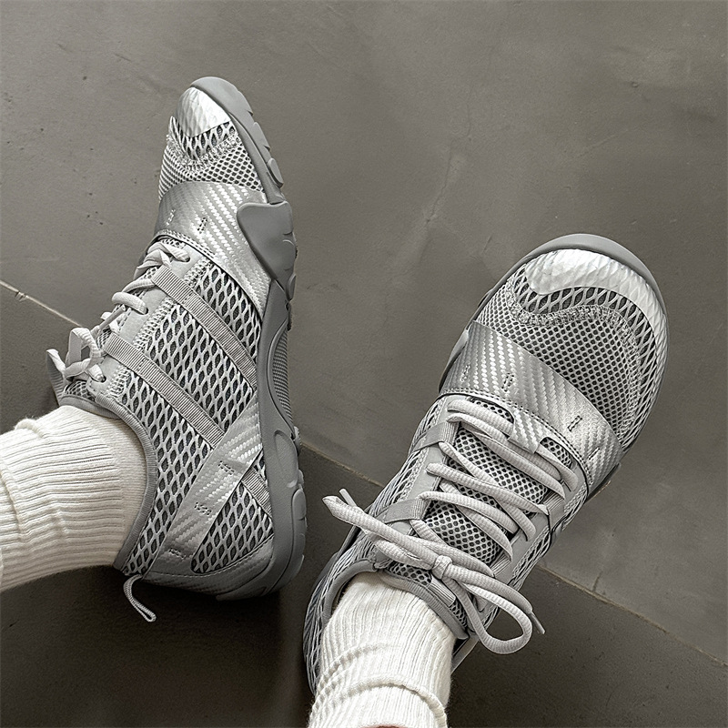 男女鞋液态银夏季情侣赤足鞋运动薄底慢跑步鞋2025网面透气休闲鞋
