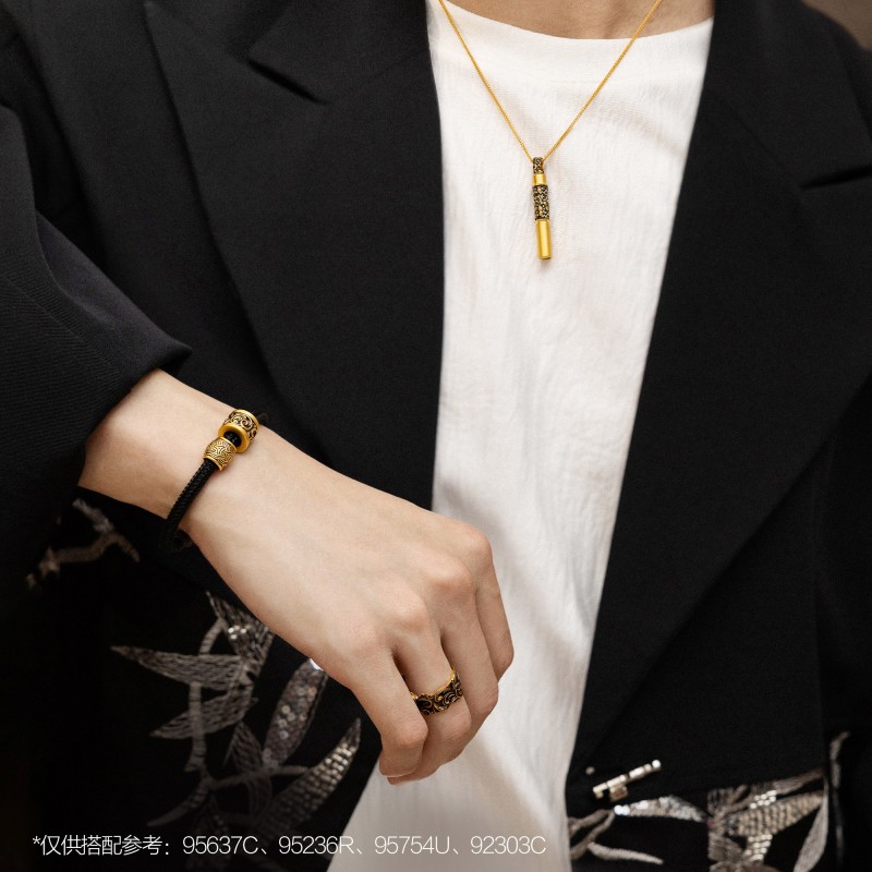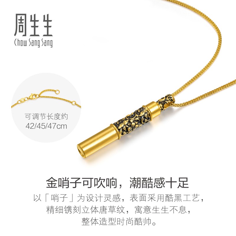 周生生华宇黄金足金酷黑系列酷黑唐草纹金哨子项链95754U计价