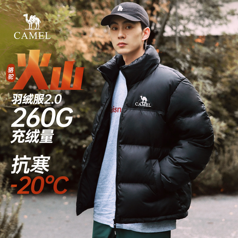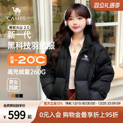 骆驼火山羽绒服男冬季2025新款连帽加厚棉服连帽面包服短款外套女