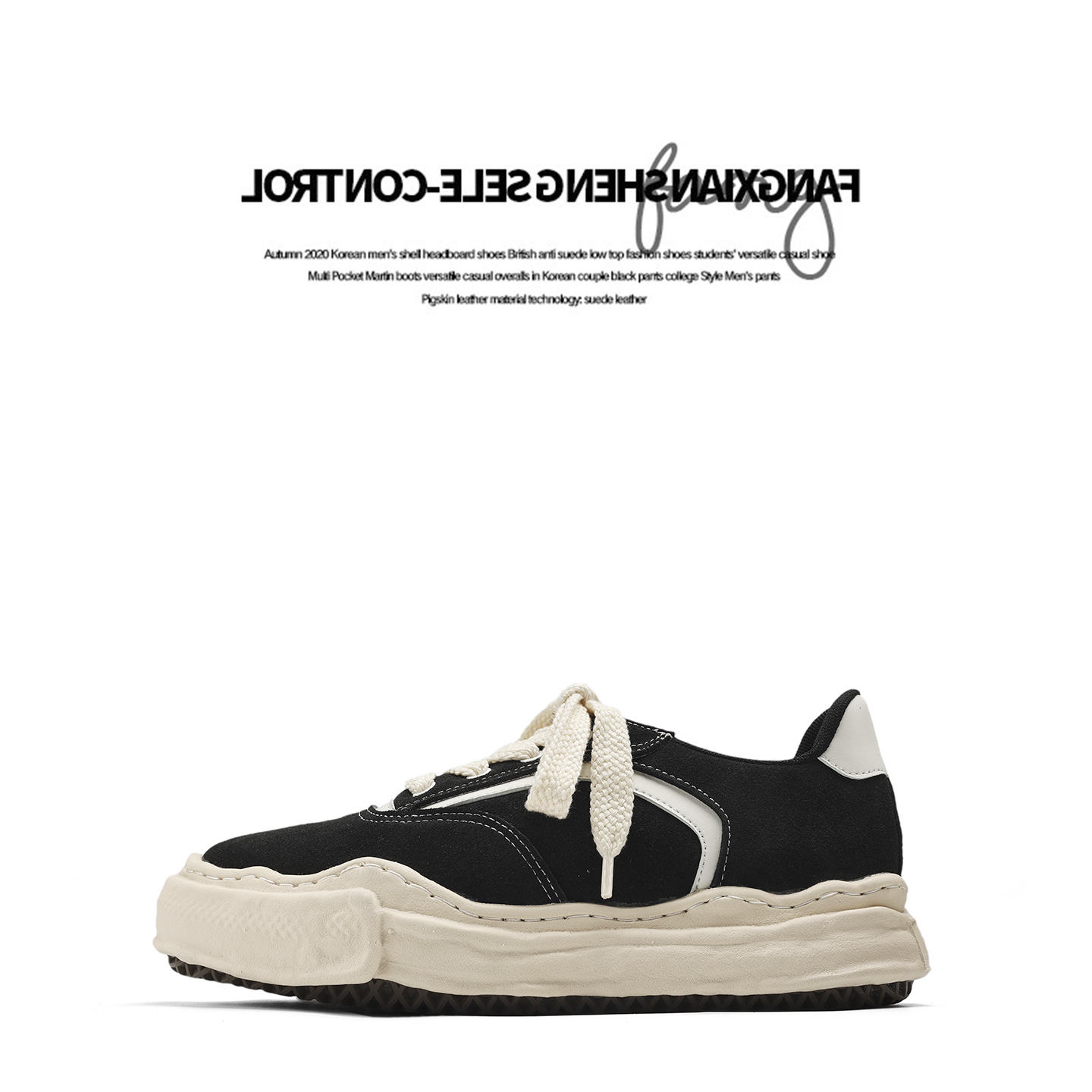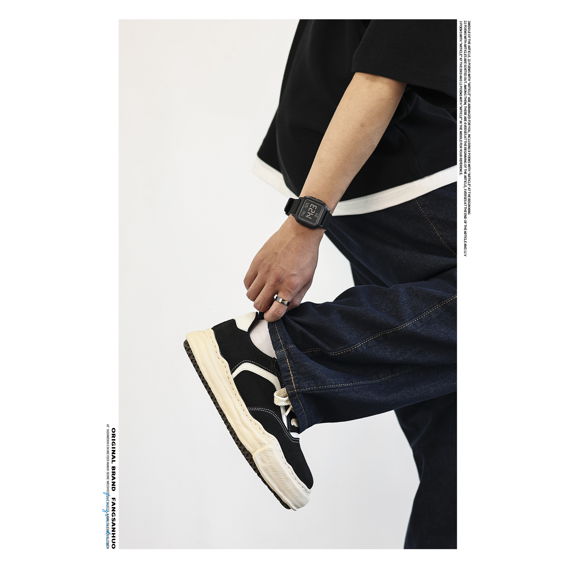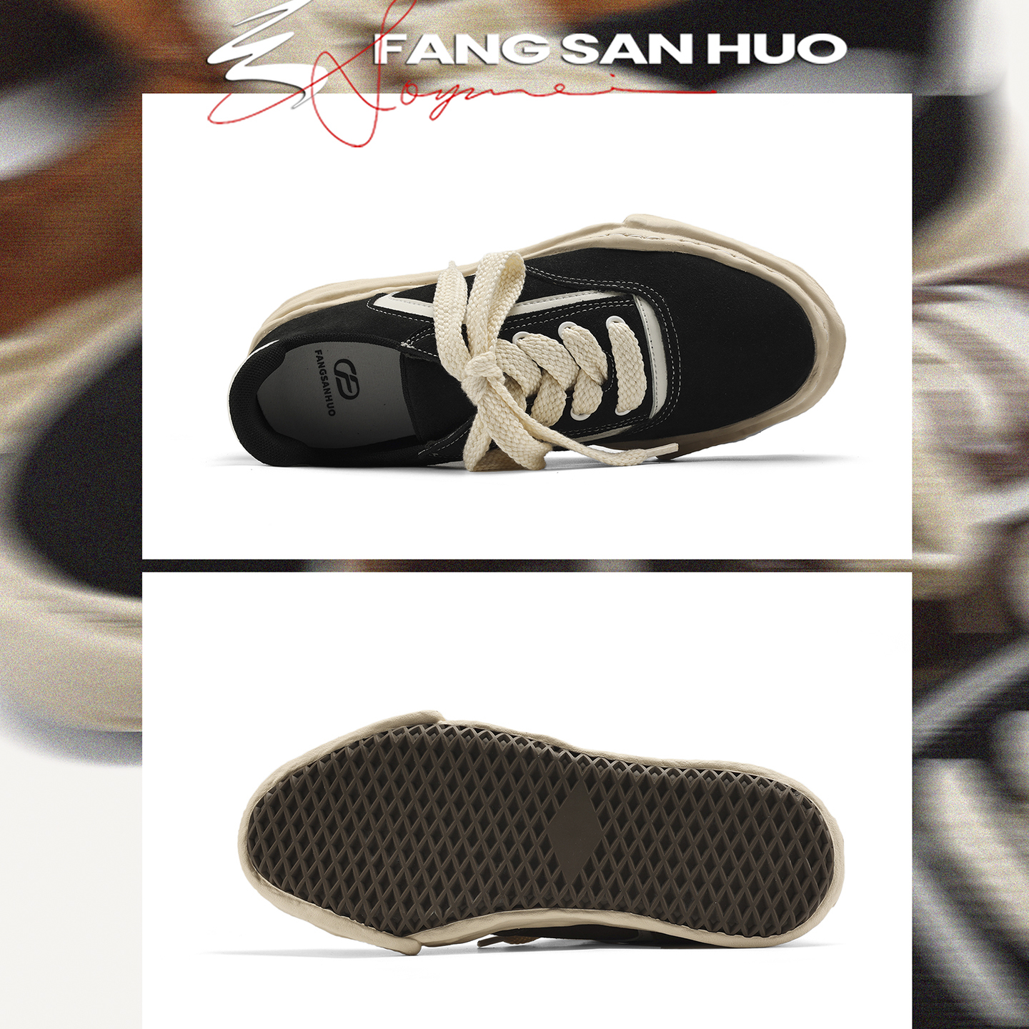 方三火小众原创日系秋冬黑色溶解鞋男复古厚底增高休闲潮流板鞋男