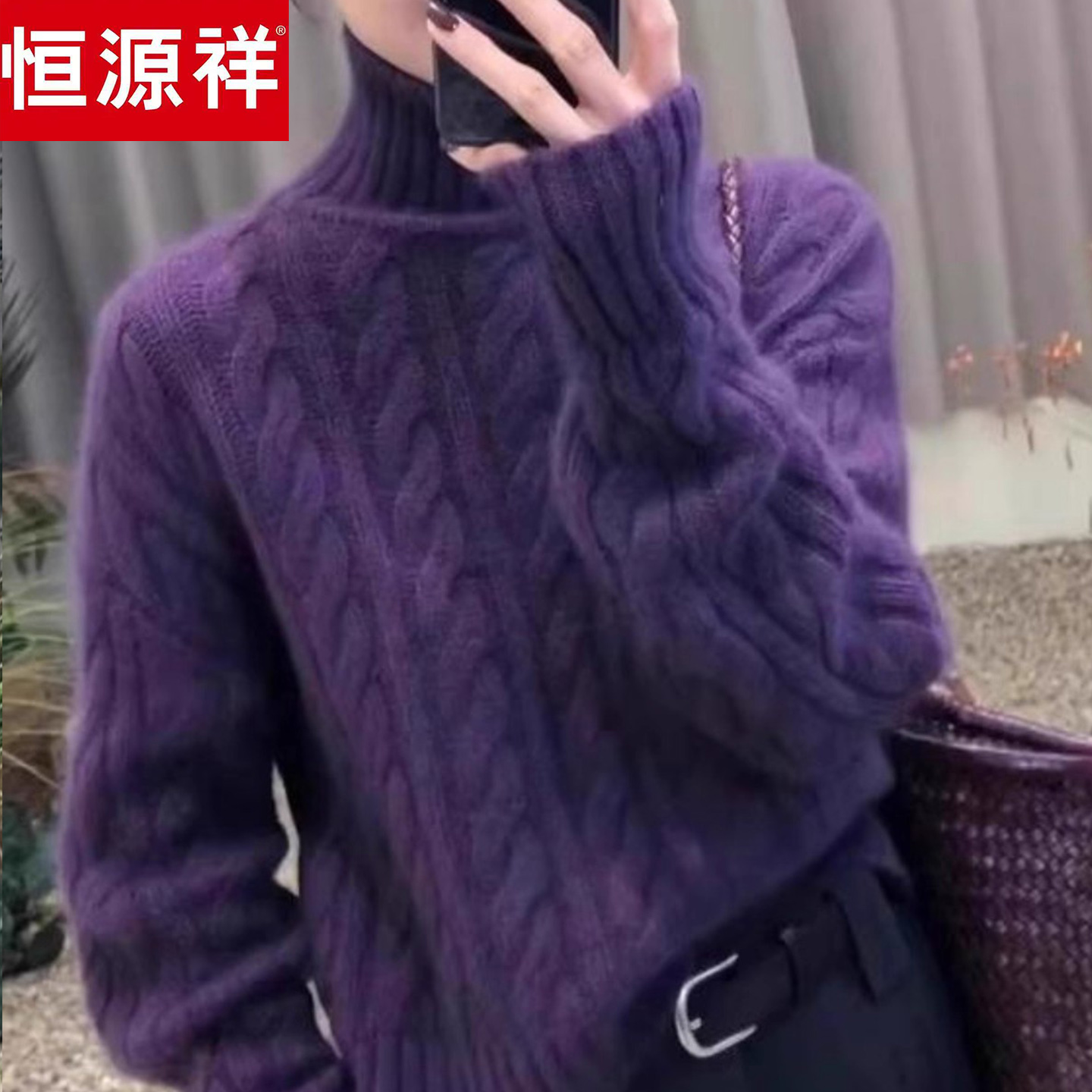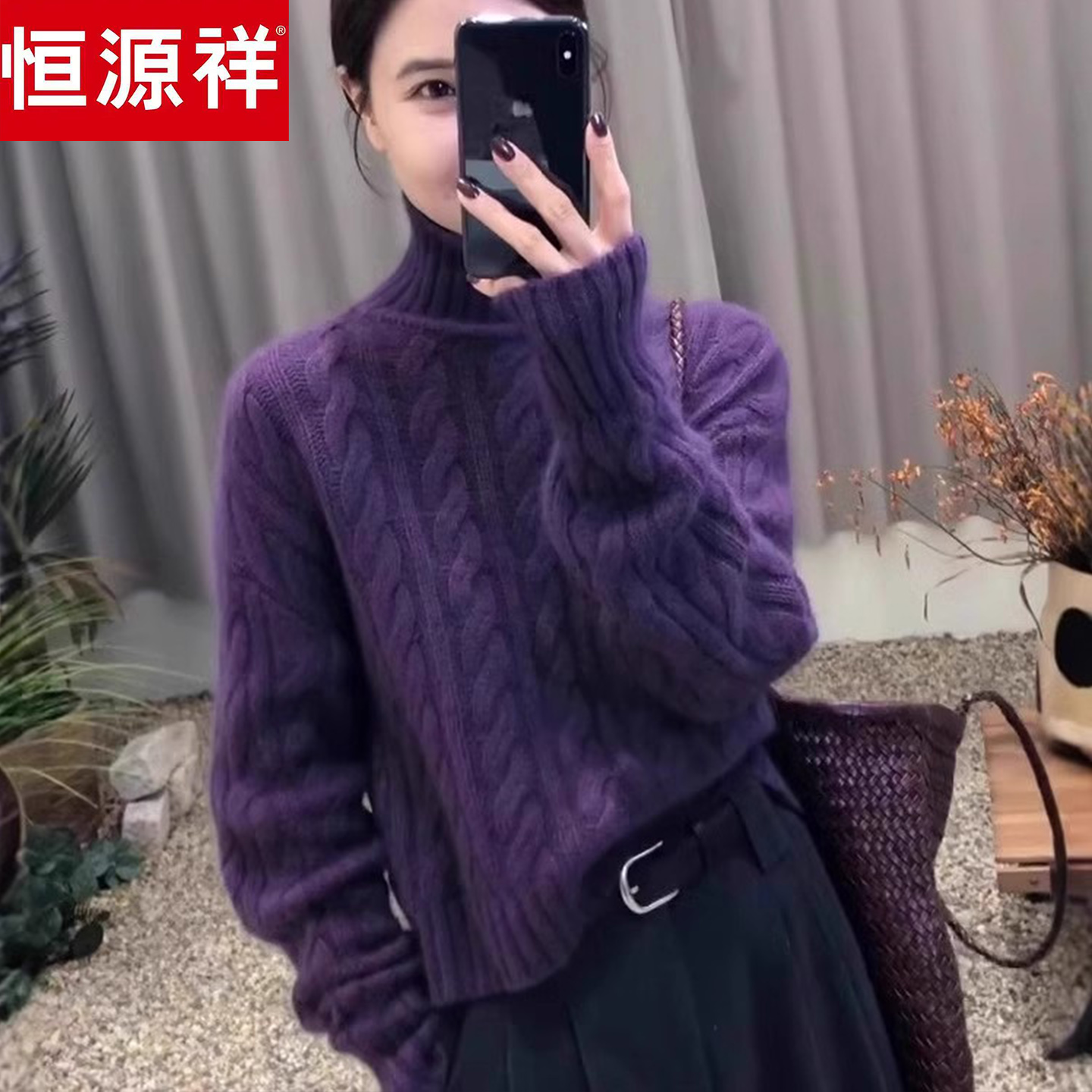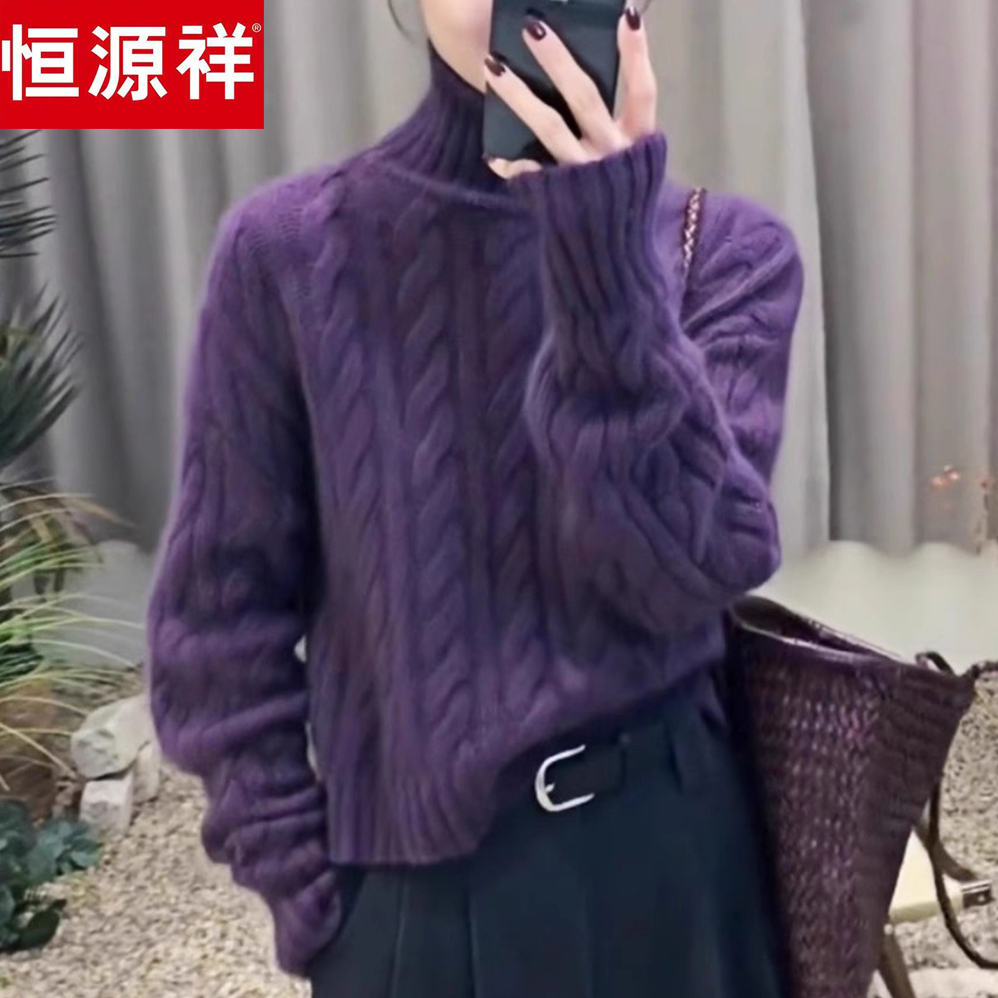 恒源祥高领纯色羊毛衫秋冬新款麻花针织打底衫宽松加厚慵懒风毛衣