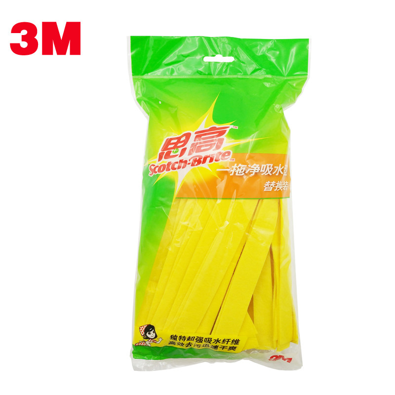 3M思高抗菌新一拖净吸水型拖把替换装 无纺布 黄色拖把头 墩布头