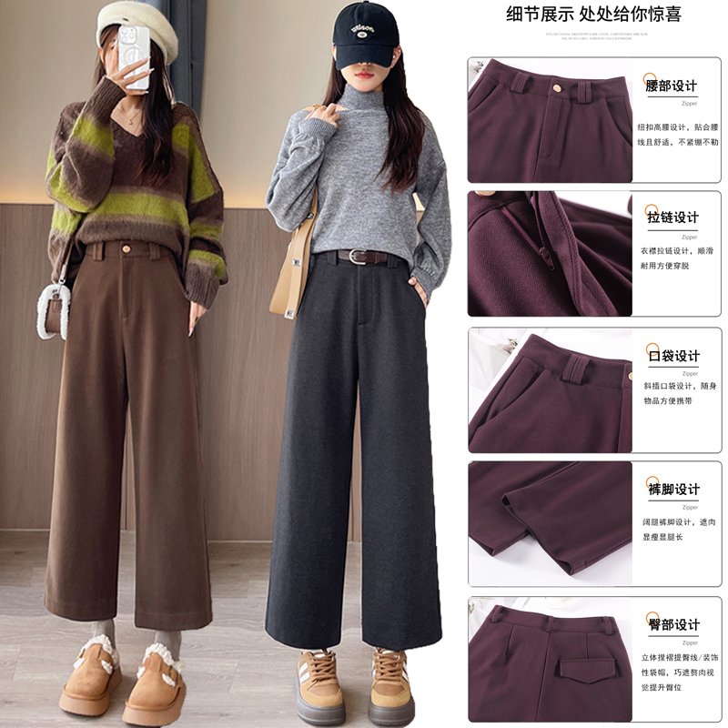 毛呢直筒西装裤女九分裤秋冬加绒新款高腰显瘦休闲哈伦烟管阔腿裤
