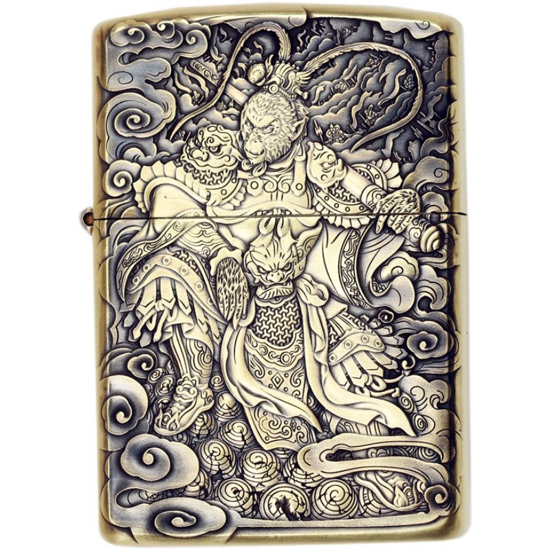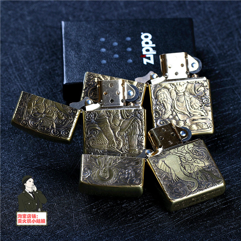 zippo芝宝煤油防风打火机纯铜盔甲机鬼王雕刻 斗战胜佛 普贤菩萨