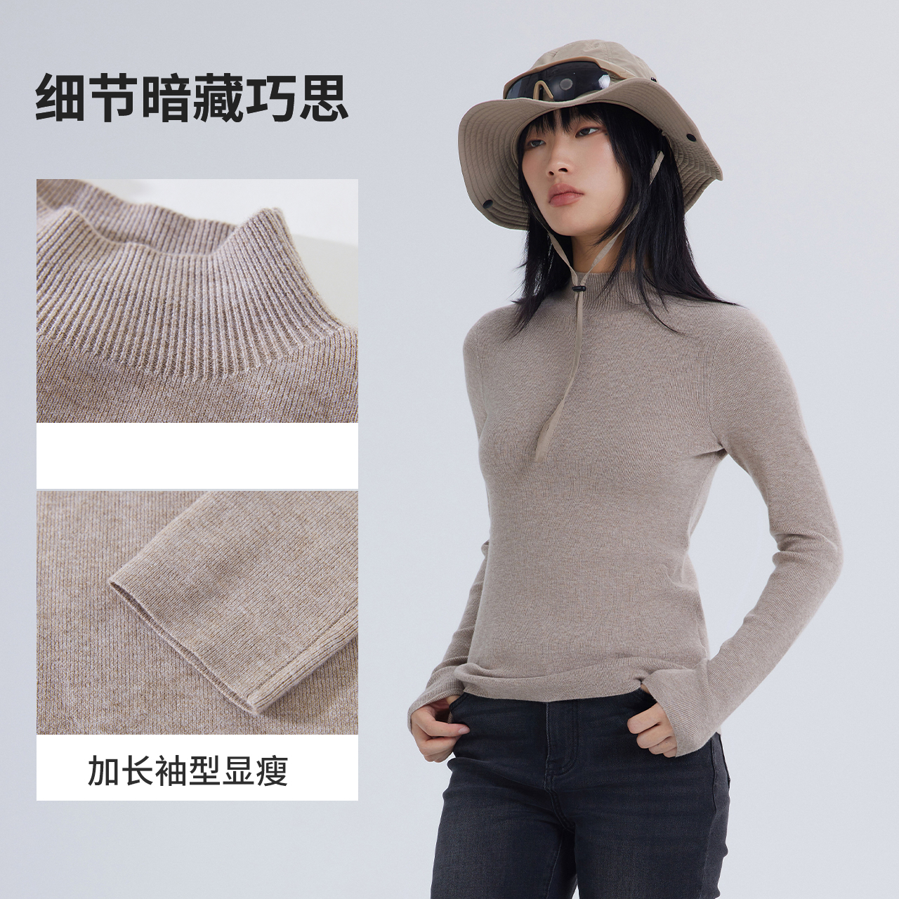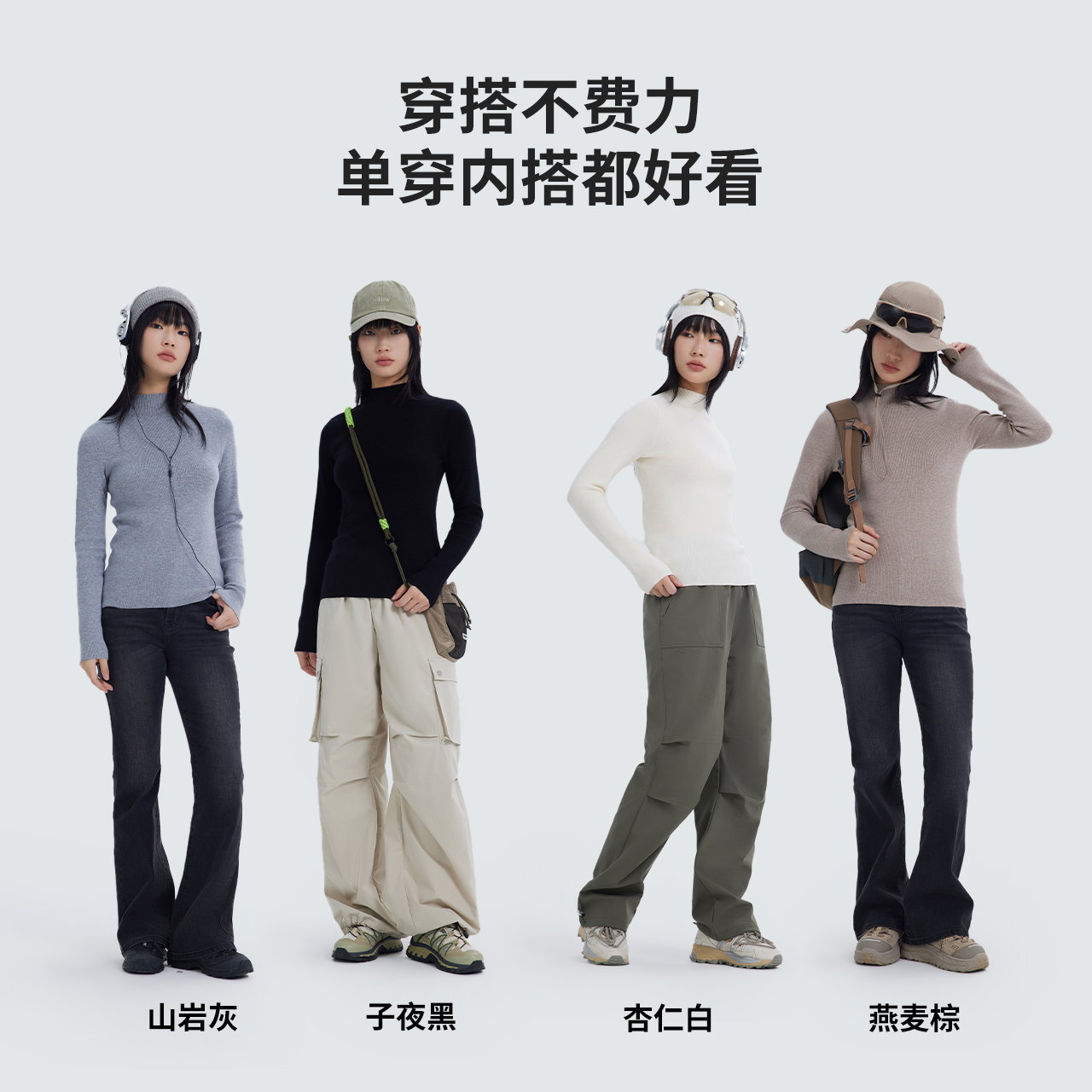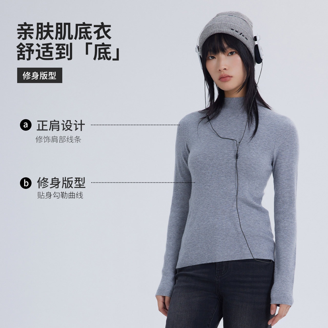 美特斯邦威半高领亲肤打底衫女春秋新款纯色修身百搭显瘦内搭上衣