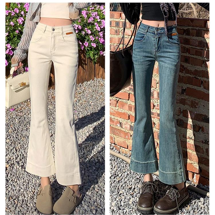 小个子九分喇叭裤女2025春夏米白色牛仔裤弹力显瘦高腰八分喇叭裤