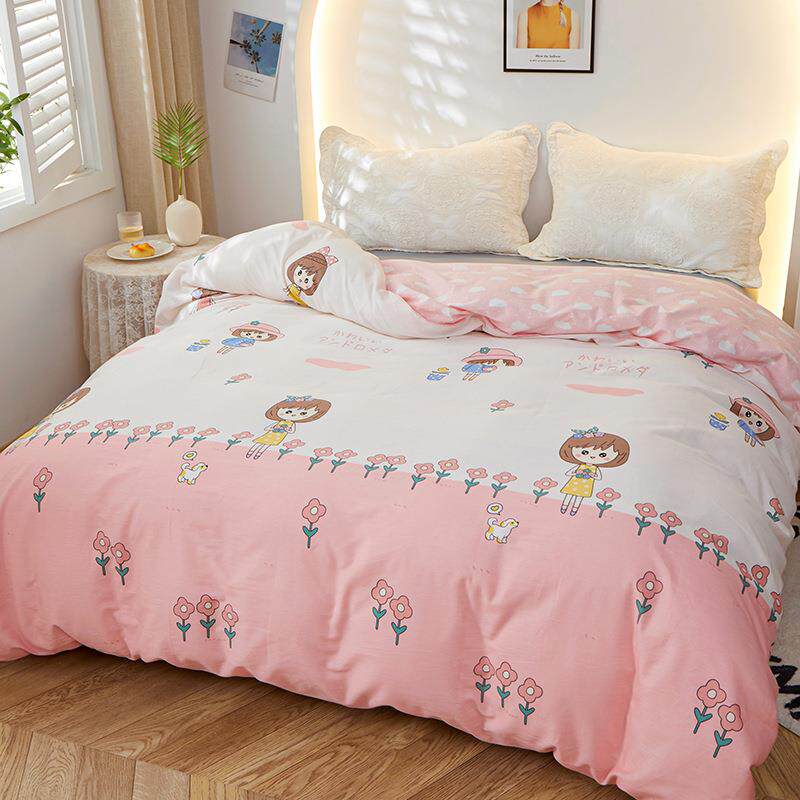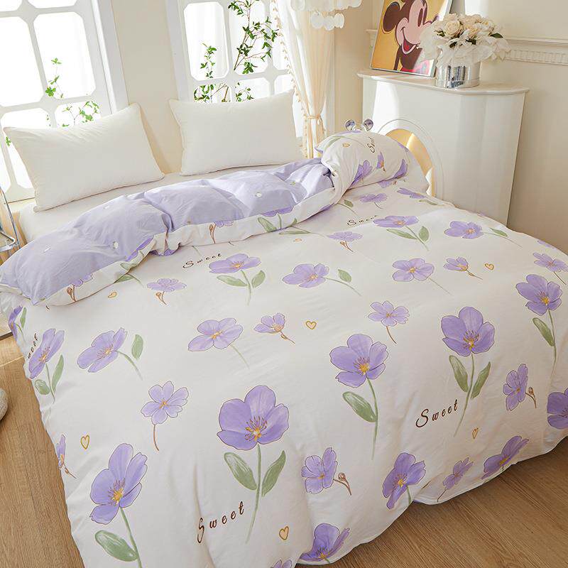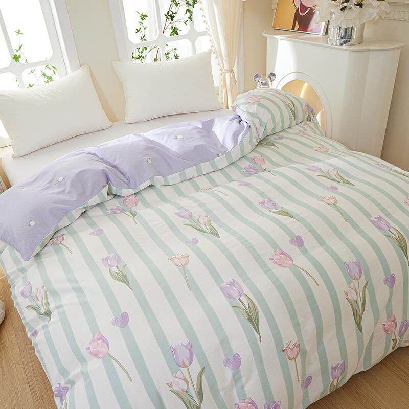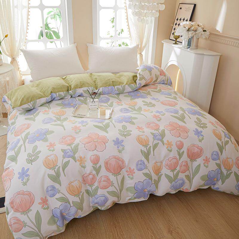 北欧简约双人床纯棉被罩200x230学生全棉被套单件小清新植物花卉