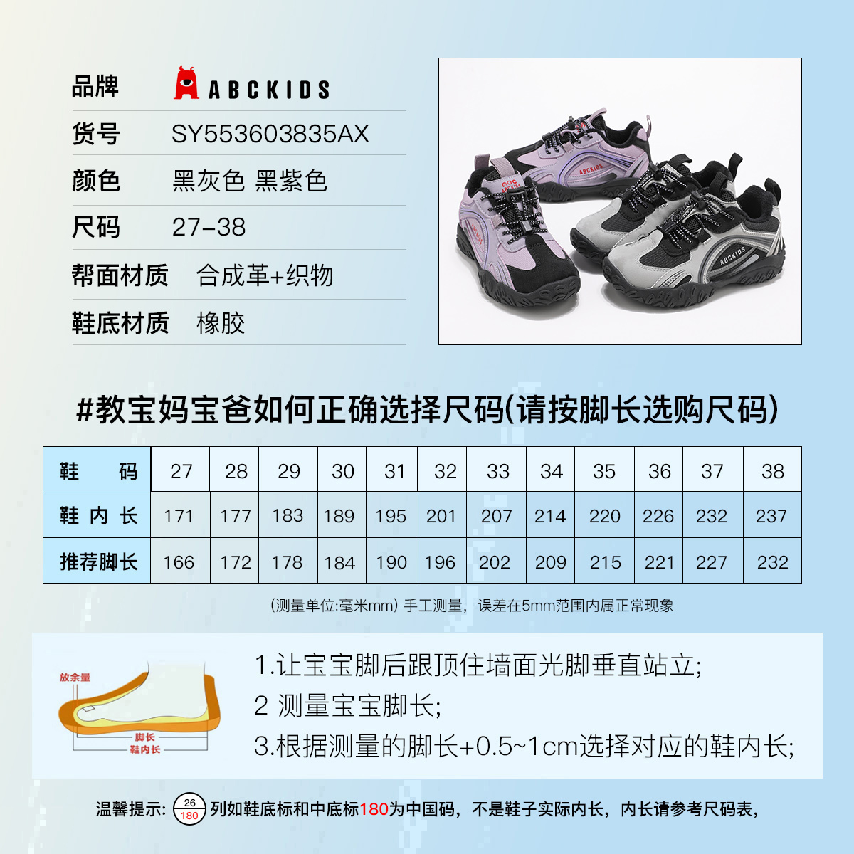 ABCkids儿童运动鞋2025冬季新款