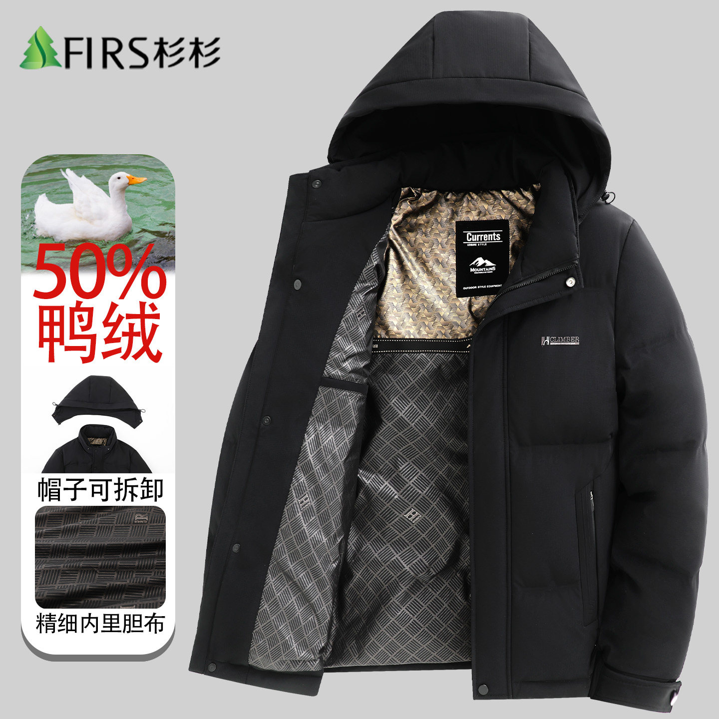 杉杉羽绒服男短款连帽加厚冬季新款中老年爸爸装休闲保暖防寒外套