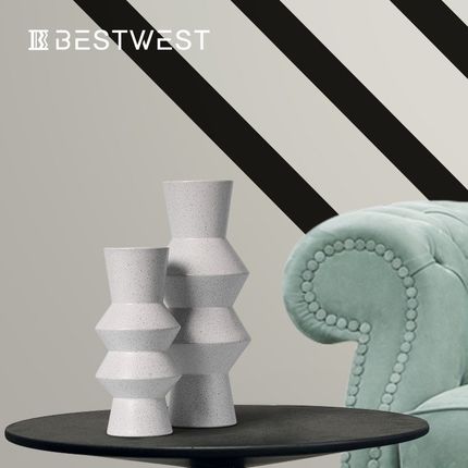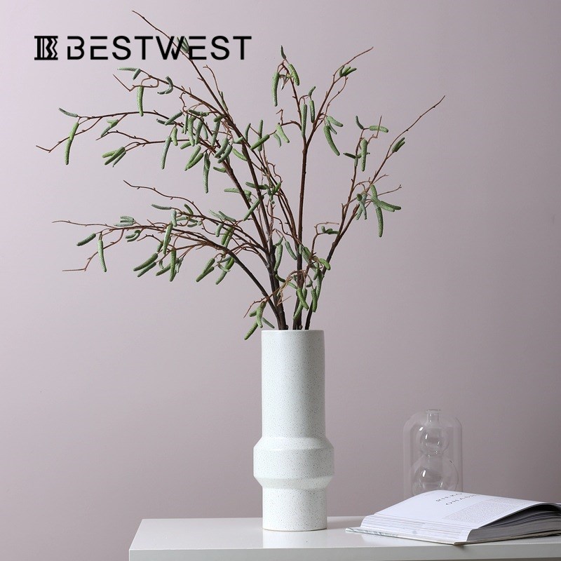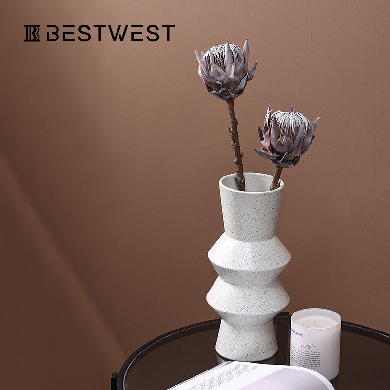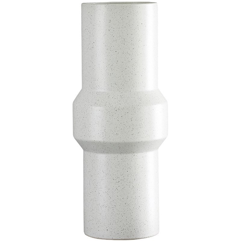 博西家居 简约白色斑点黏土直筒陶瓷花瓶摆件家居软Z装饰品花器