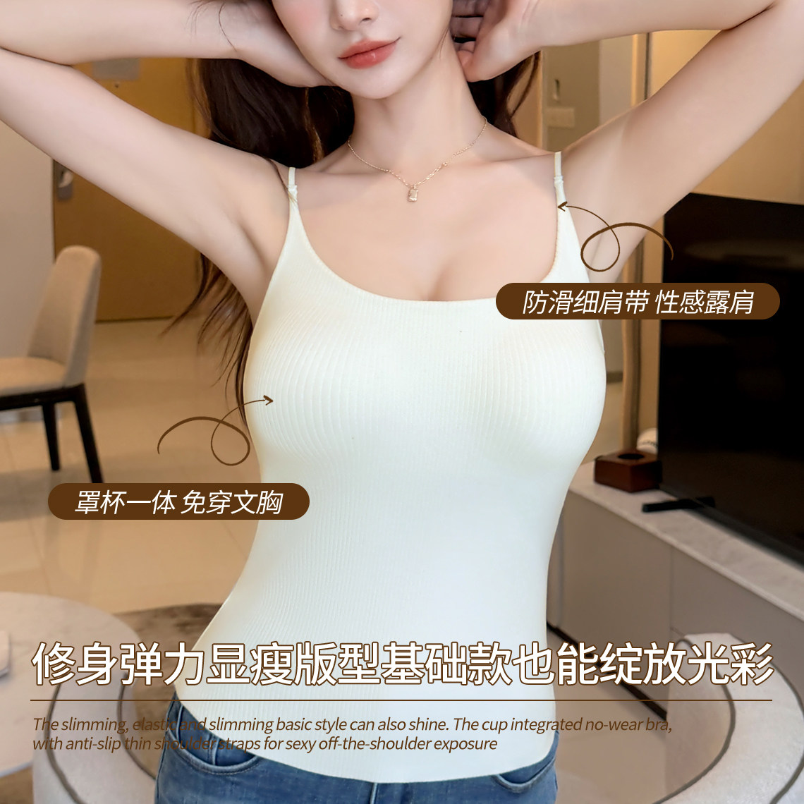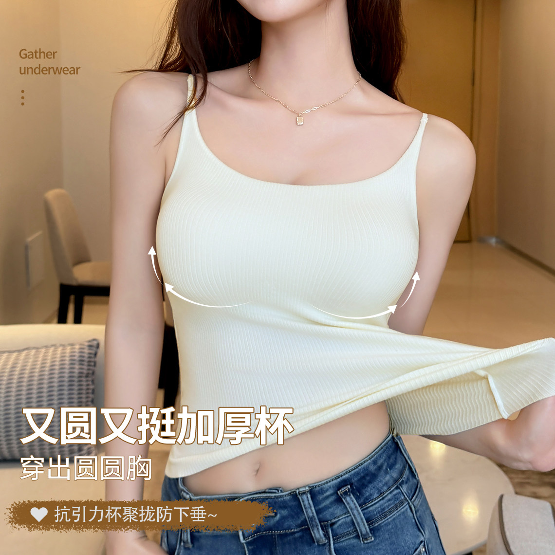 吊带背心女带胸垫小胸加厚显大