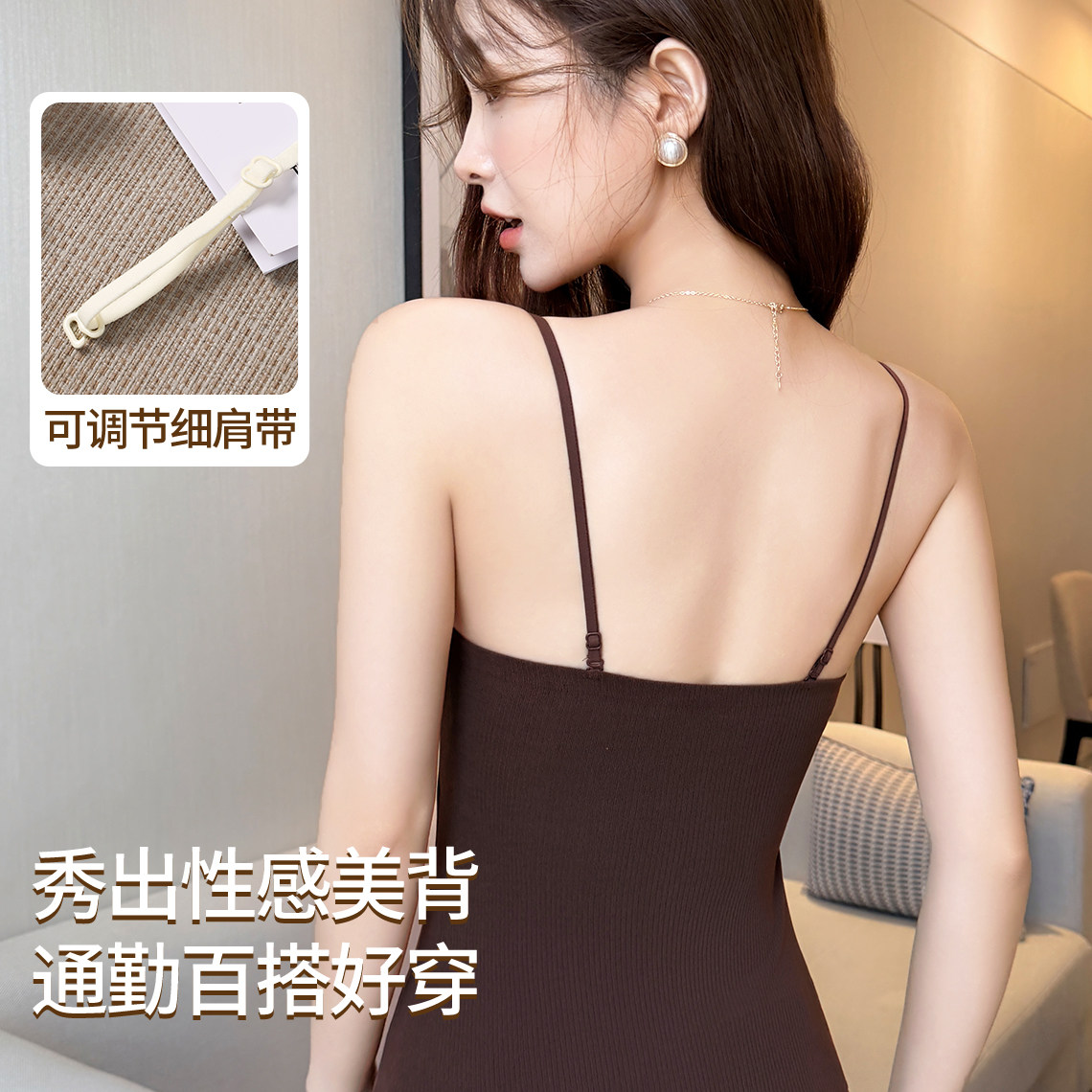 吊带背心女带胸垫小胸加厚显大内衣内搭打底上衣美背一体文胸秋冬