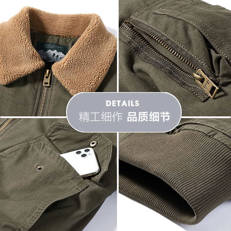冬季棉衣男工装羊羔绒外套加绒加厚宽松大码翻领风行夹克保暖棉服