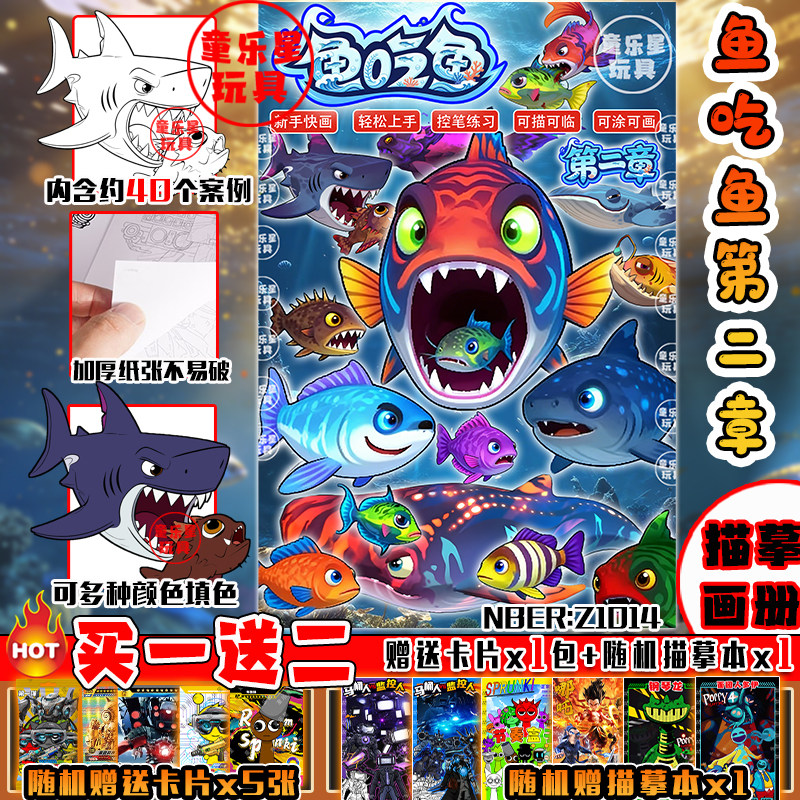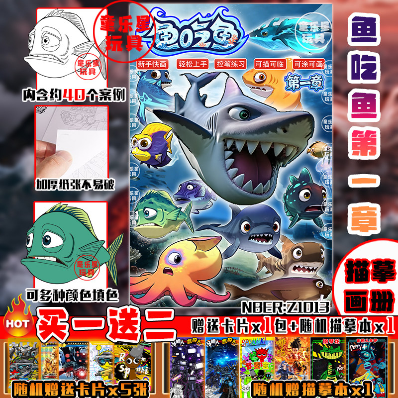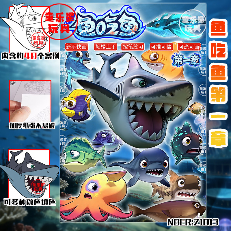 鱼吃鱼绘画画本描摹本谁是卧底金枪鱼大白鲨炸弹鱼益智填色线稿本