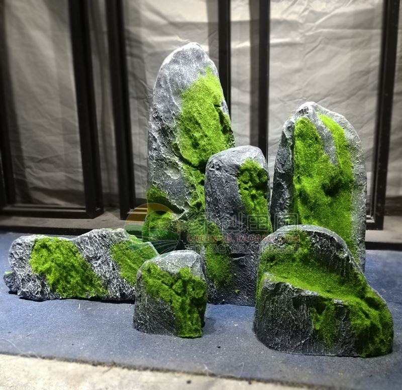 玻璃钢仿真青苔石人造雪浪石枯山水禅意造景园林摆件灰色假山组合