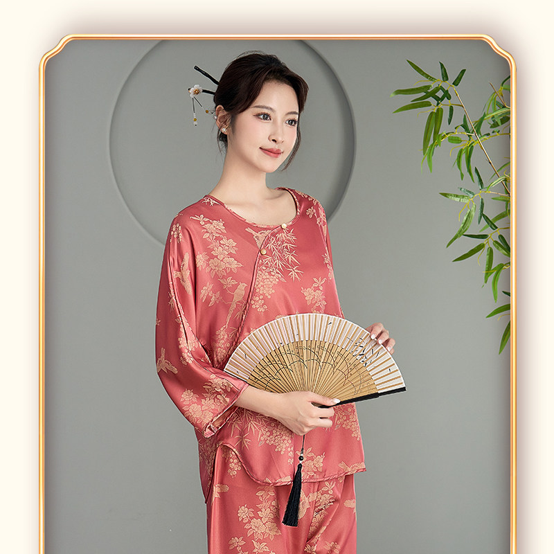 上海故事2025年春夏新款新中式冰丝睡衣女国风七分袖家居服礼盒