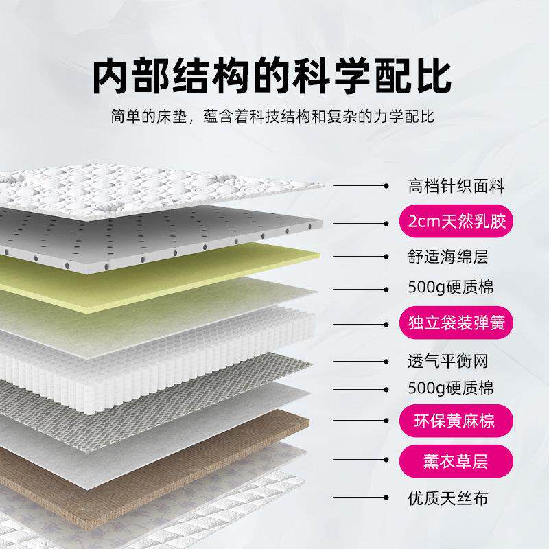 爱依瑞斯天然乳胶床垫静音独立簧软硬两用黄麻棕护脊床垫IWFM-003