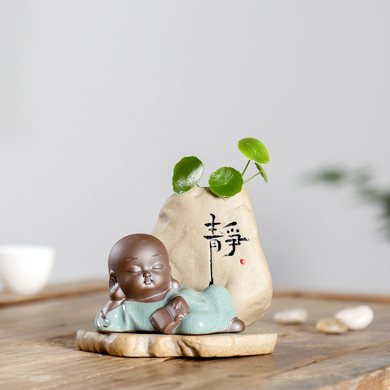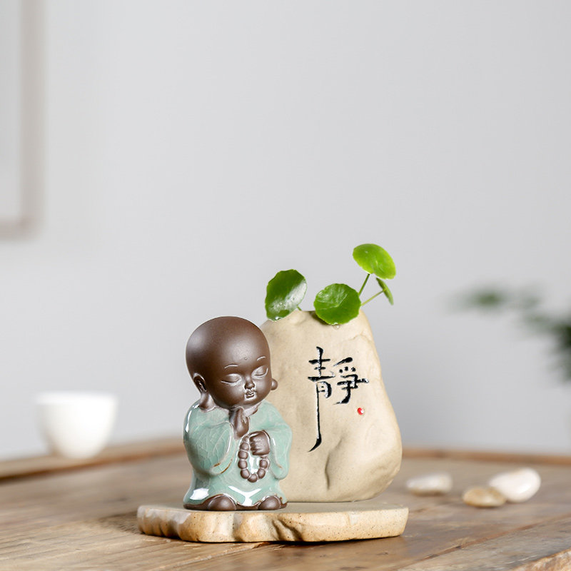 小和尚摆件 禅意 小沙弥茶宠摆件精品可养迷你小花器水培花瓶茶具