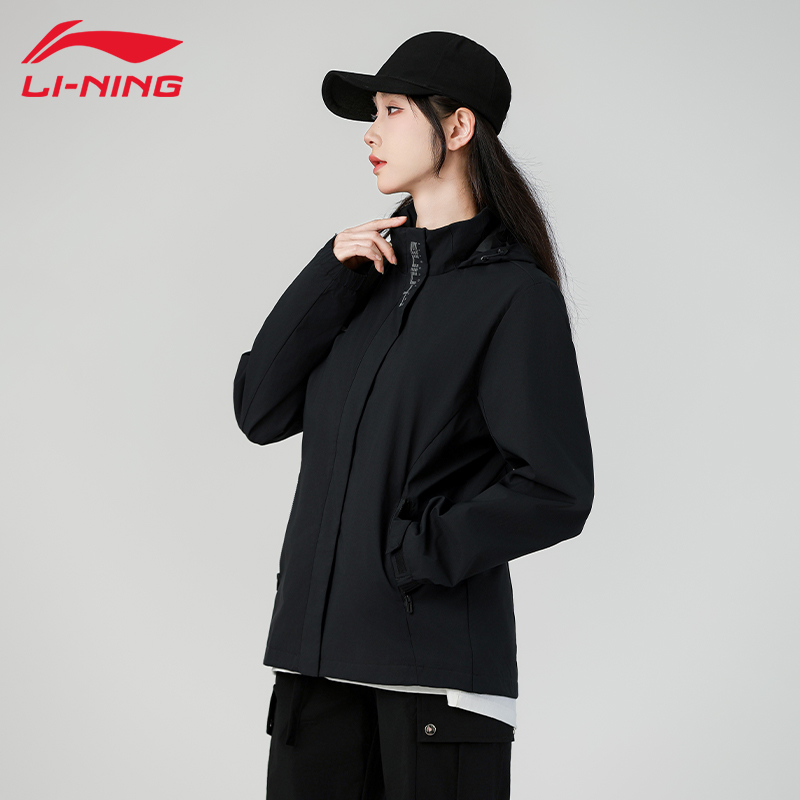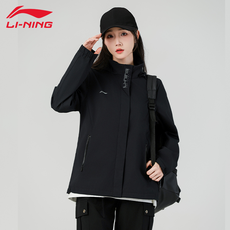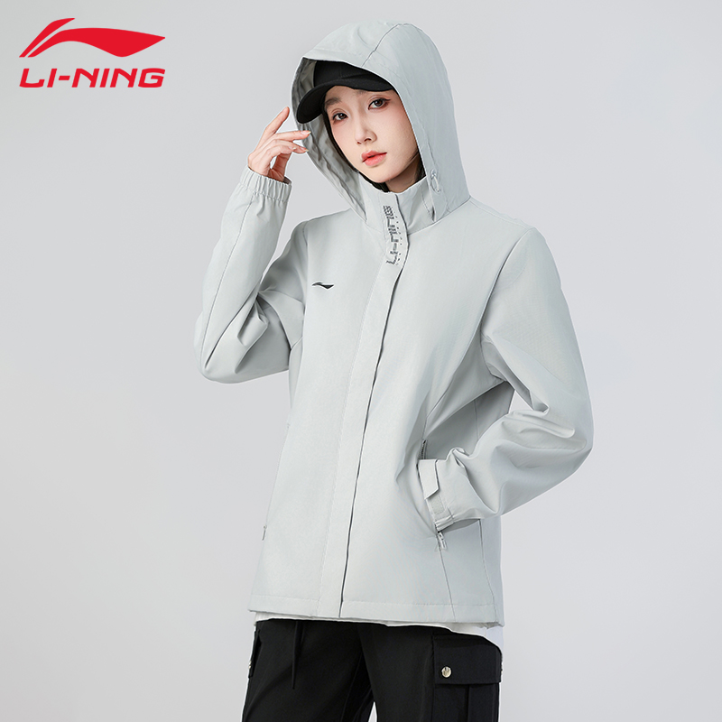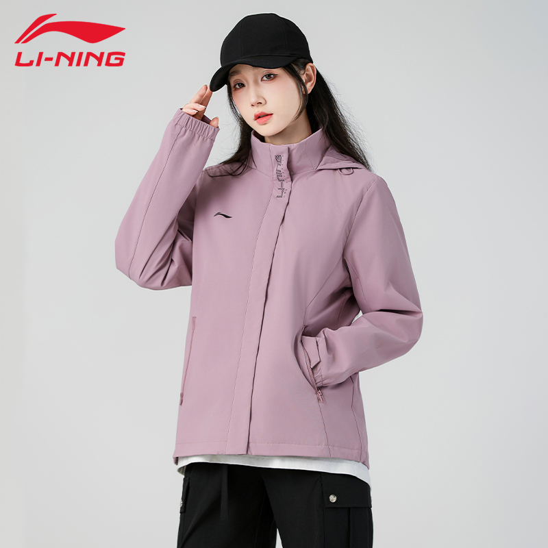 李宁女款风衣外套春秋新款防风连帽软壳舒适户外跑步运动休闲上衣