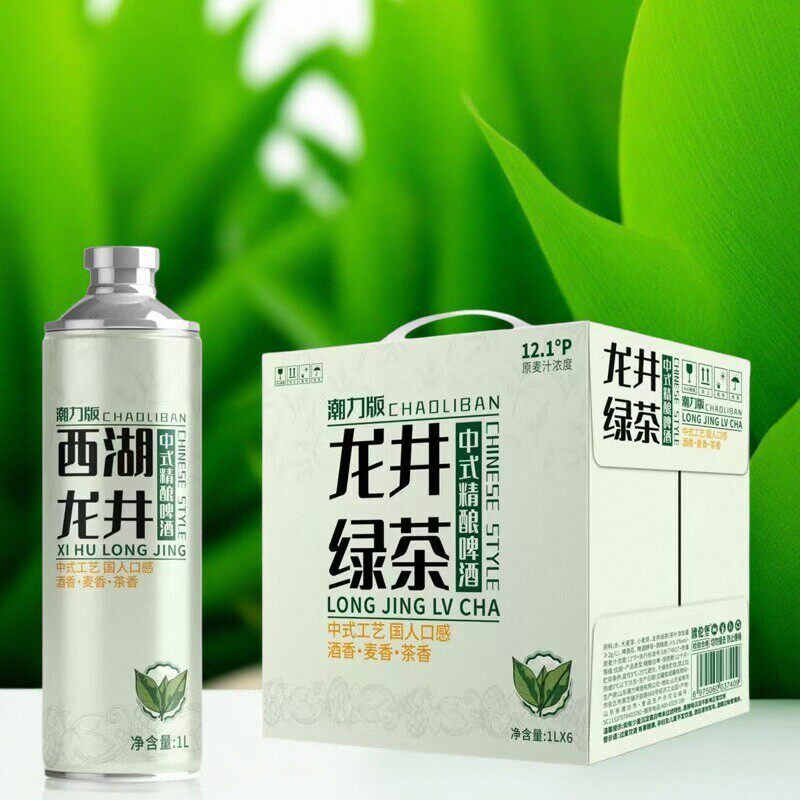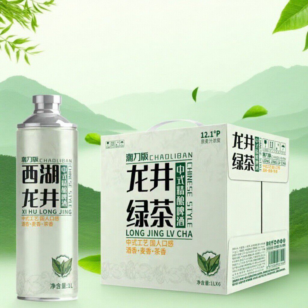 潮力精酿啤酒龙井绿茶啤中式茶香小麦黄啤1000mlx2罐装昆雨一整箱