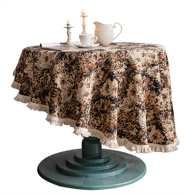 蔓越家 法式复古圆桌布北欧ins台布棉麻流苏餐桌布电视柜茶几布