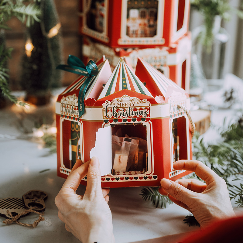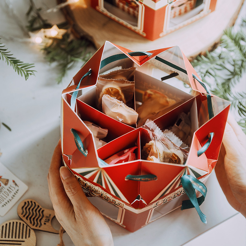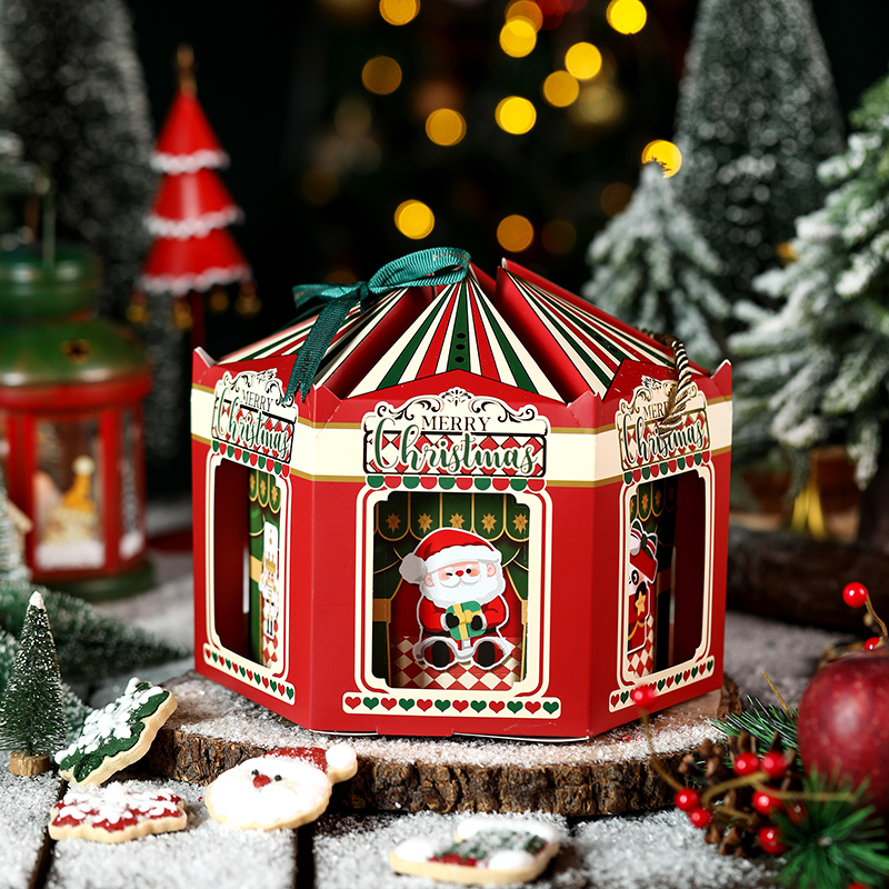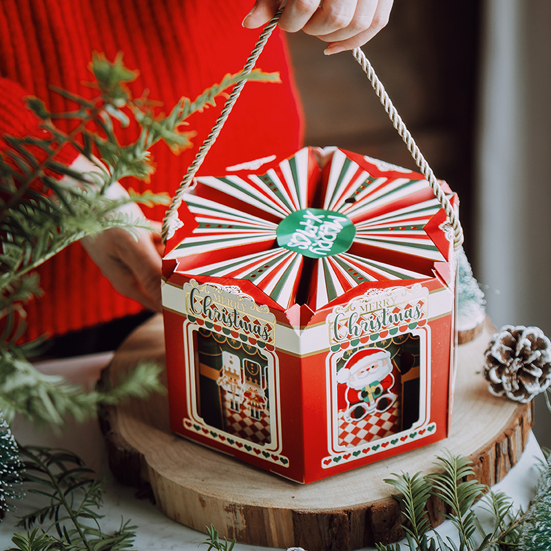 圣诞节烘焙包装盒雪花酥饼干牛轧糖曲奇糖果六角开窗手提盲盒礼物