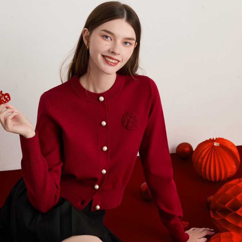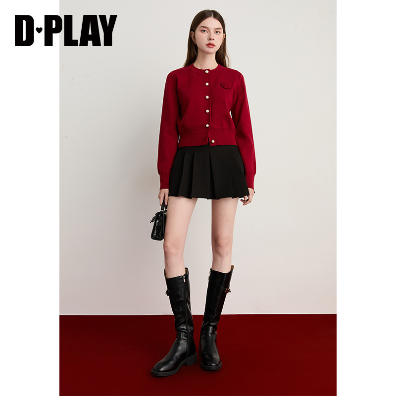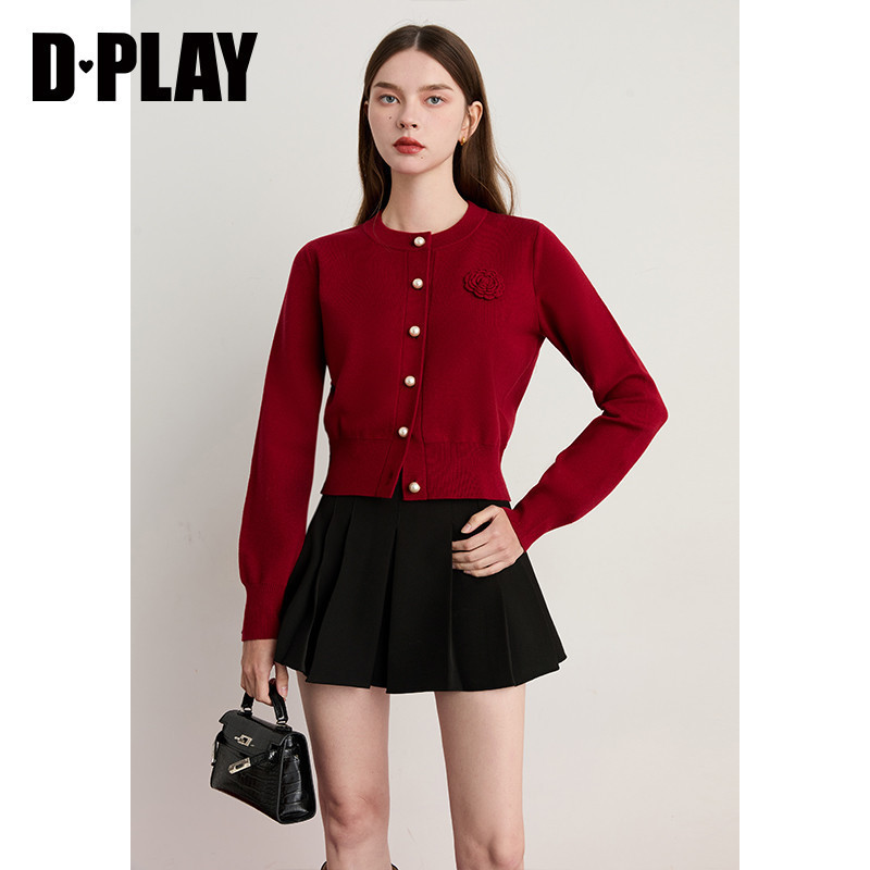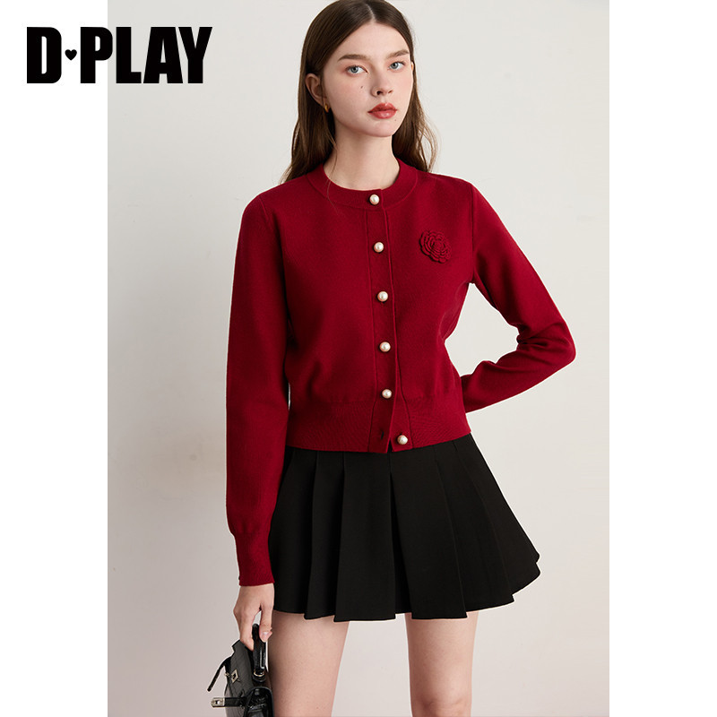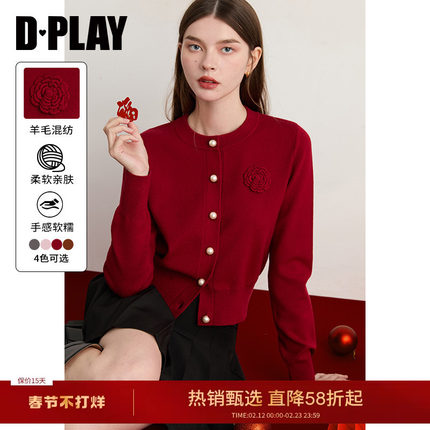 DPLAY【珠光星辰系列】2026年春季新款红色毛衣针织衫新年上衣女