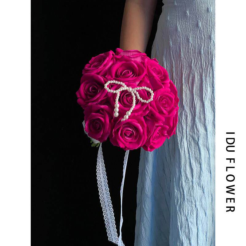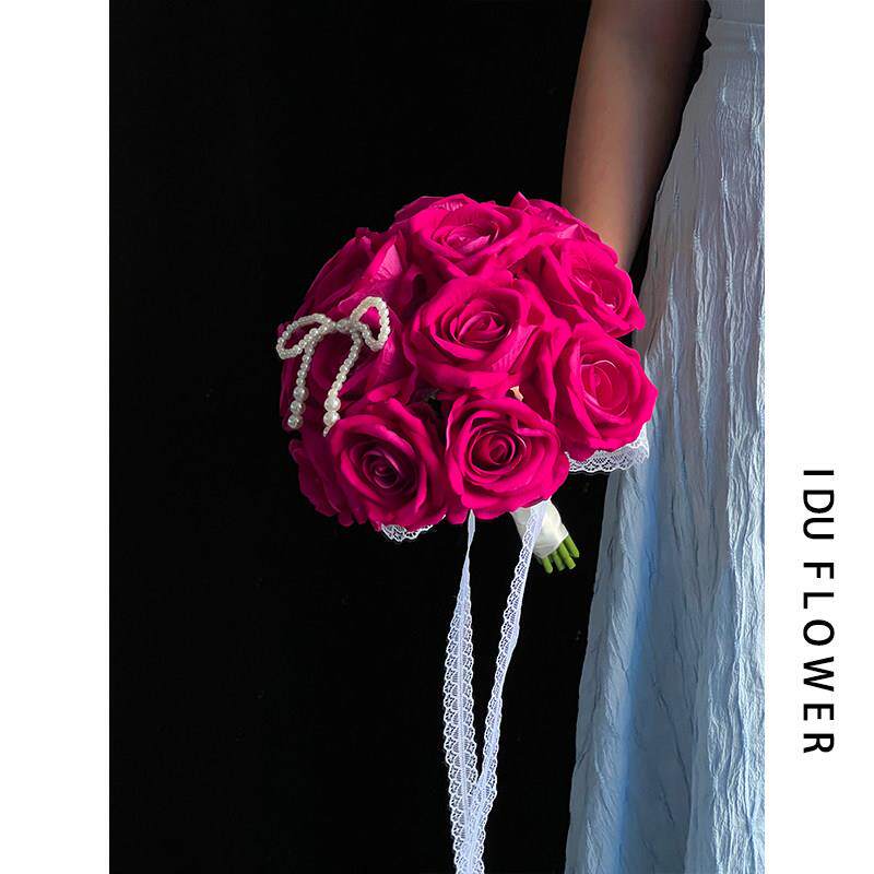 覆古新娘手捧花弗洛伊德玫瑰花彷真花婚礼结婚花束拍照红色花球
