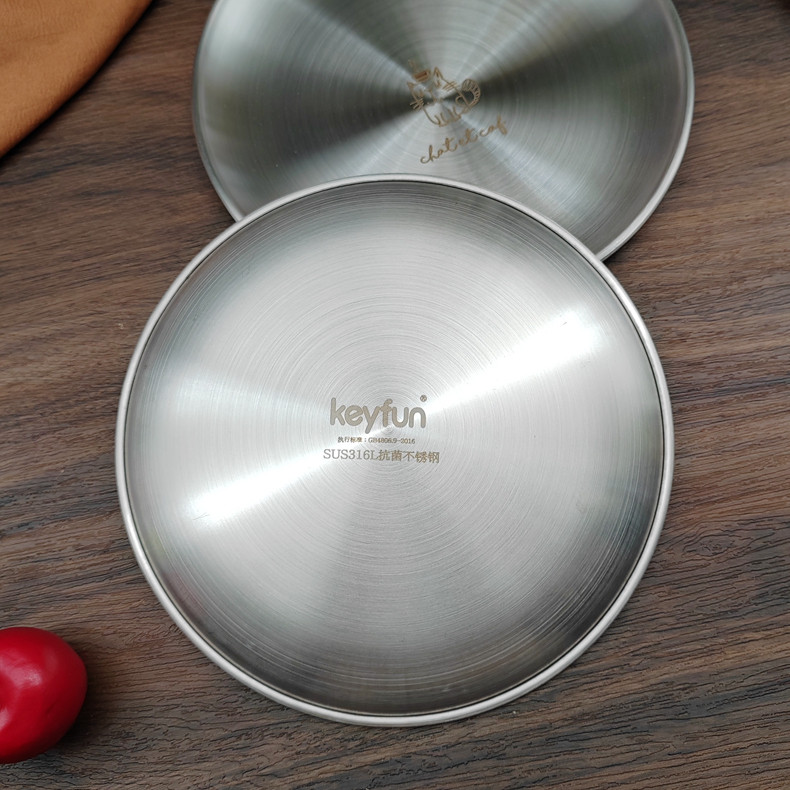 韩式316L不锈钢盘子加厚圆盘骨碟商用托盘蛋糕盘水果盘西餐盘菜盘
