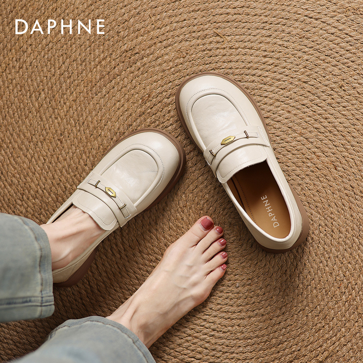 达芙妮英伦风乐福鞋软底单鞋皮鞋