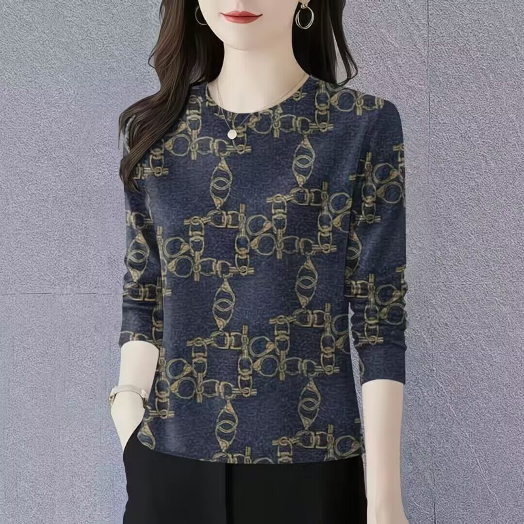 打底衫新款时尚简约秋冬薄圆领大码爆款内搭长袖T恤上衣女装潮