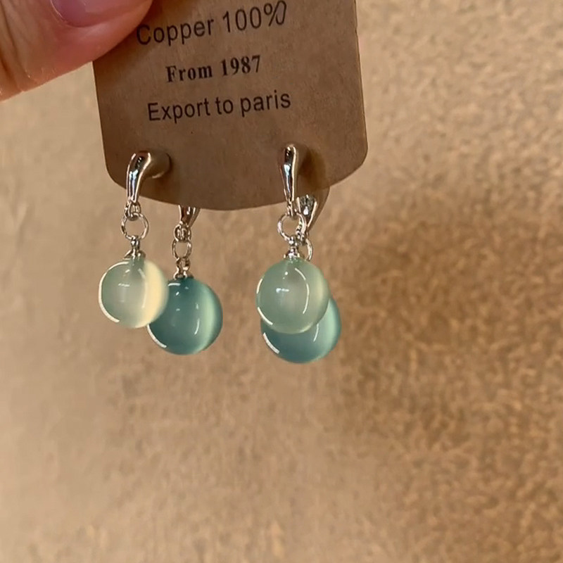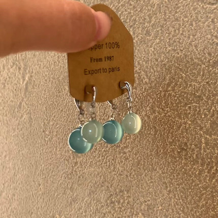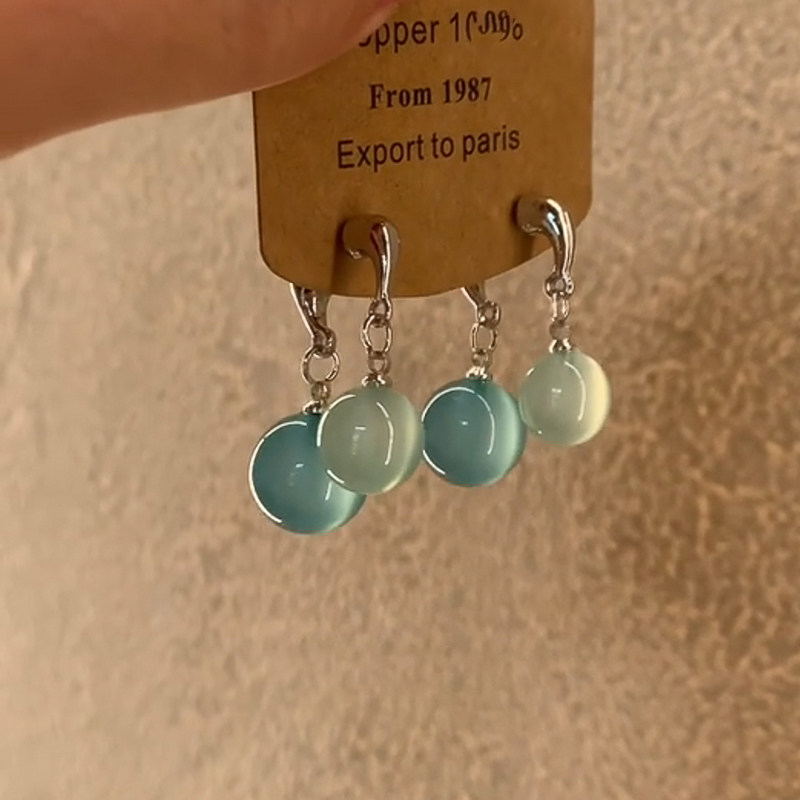 清凉一夏_设计感清透海水珠交叉耳环2026年夏季新款耳坠耳饰配饰