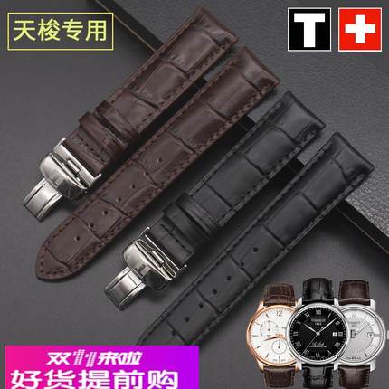 适用原厂天梭力洛克手表带1853库图男女真皮表带蝴蝶扣配件19mm
